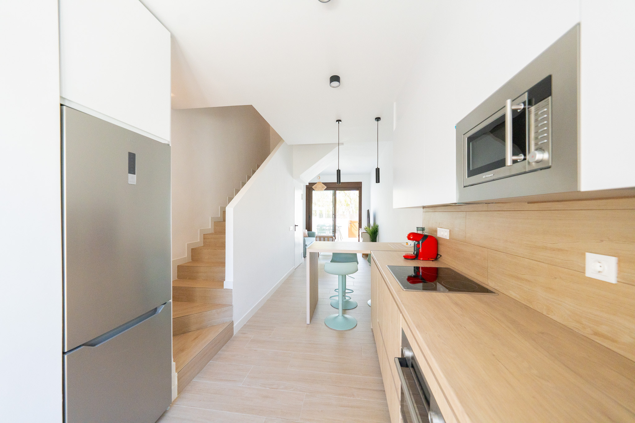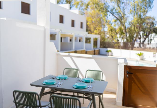 Il casa a schiera a San Jose ha 2 camera(e) da letto e capacità per 4 persone. Alloggio di 90 m². Ha giardino, giardino arredato, 40 m² della terrazza, lavatrice, ferro da stiro, accesso internet (wifi), asciugacapelli, riscaldamento pompa di calore, aria condizionata, piscina in comune, garage in in struttura, 1 Televisore.La cucina americana, a vetroceramica, è attrezzata con frigorifero, microonde, forno, congelatore, lavastoviglie, stoviglie/posate, utensili da cucina, caffettiera, tostapane, bollitore e spremi agrumi.