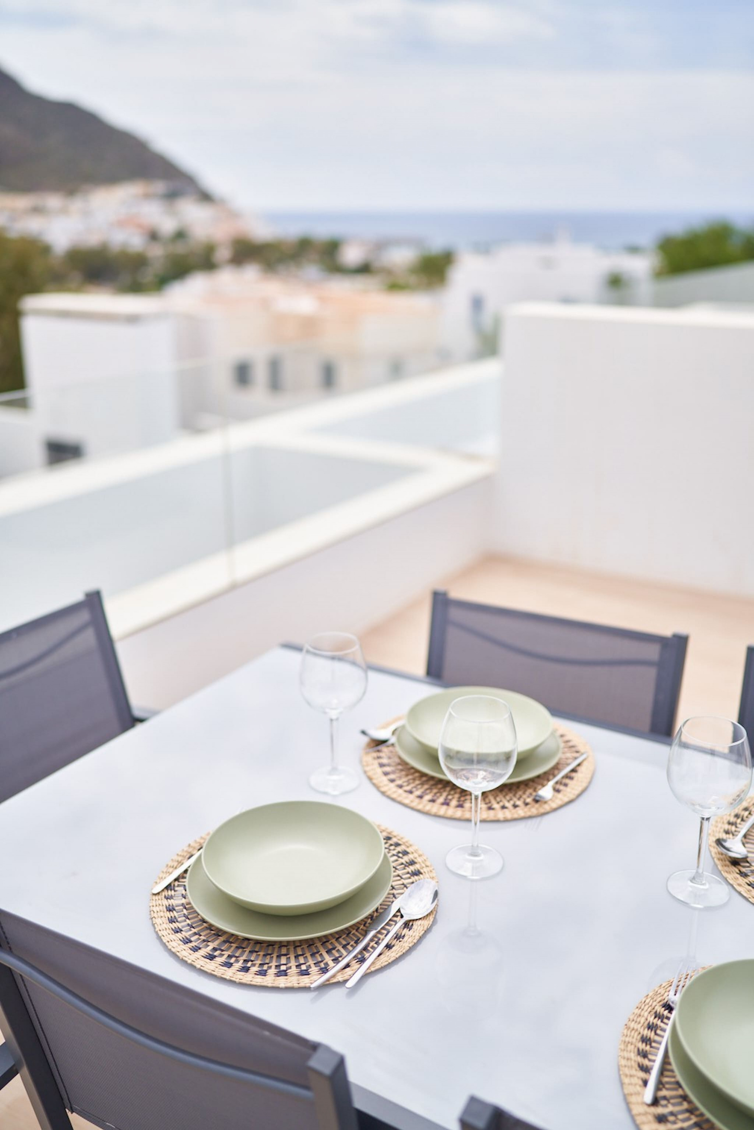 La casa a San Jose ha 3 camera(e) da letto e capacità per 6 persone. Alloggio di 110 m². Ha giardino, giardino arredato, 15 m² della terrazza, lavatrice, barbecue, camino, ferro da stiro, accesso internet (wifi), asciugacapelli, allarme, aria condizionata, piscina in comune, parcheggio coperto in in struttura, 1 Televisore.La cucina americana, a vetroceramica, è attrezzata con frigorifero, microonde, forno, congelatore, lavastoviglie, stoviglie/posate, utensili da cucina, caffettiera, tostapane, bollitore e spremi agrumi.