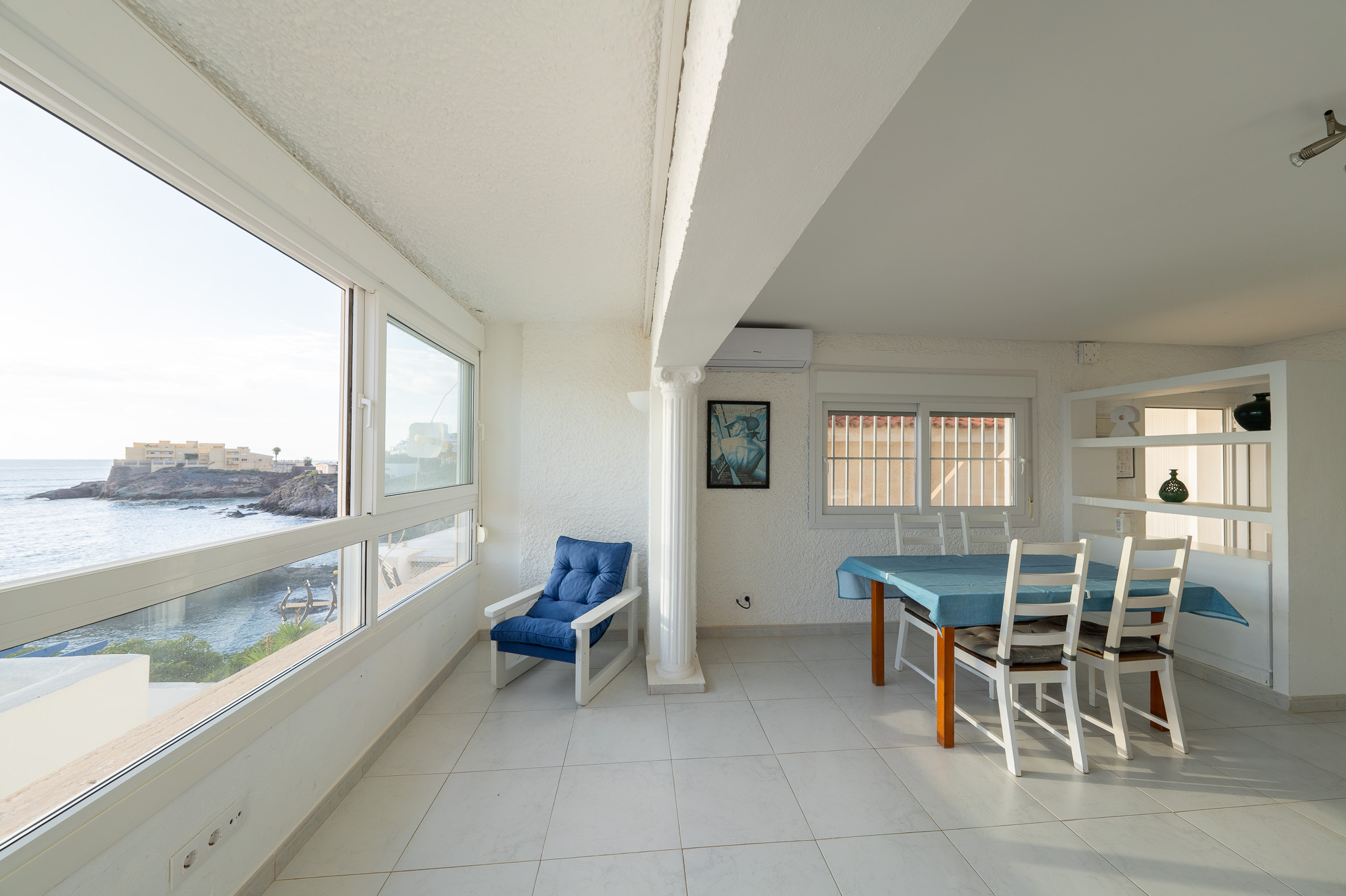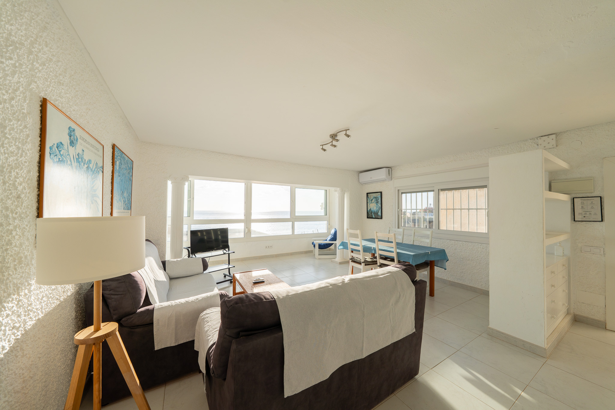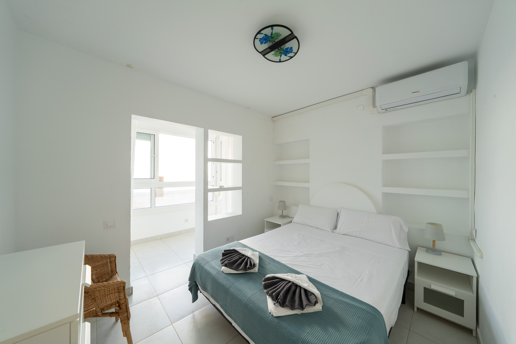 Estupendo apartamento/ático en la parte alta de San José a 3 minutos de la playa y del centro del pueblo y piscina comunitaria Dispone de 1 dormitorio, dos sofás-camas con cama adicional, un baño, cocina totalmente equipada, espacio de trabajo, una terraza al sur y otra terraza muy amplia con magnífica Galería con espacio para Fitness y tumbonas/solárium, así como una mesa de comedor.