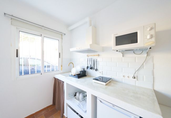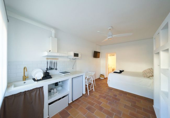 Pequeño estudio con encantadora terraza a poca distancia de la playa. Consta de una sola habitación luminosa con cama de matrimonio, una cocina equipada con todas las comodidades y un baño con ducha.