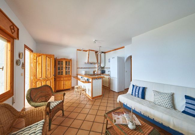 Coqueto apartamento en la Isleta del Moro equipado con todo lo necesario para disfrutar de unas fantásticas vacaciones. Dispone de dos dormitorios, un baño, cocina totalmente equipada, sofá-cama y terraza con muebles de exterior y vistas al mar.