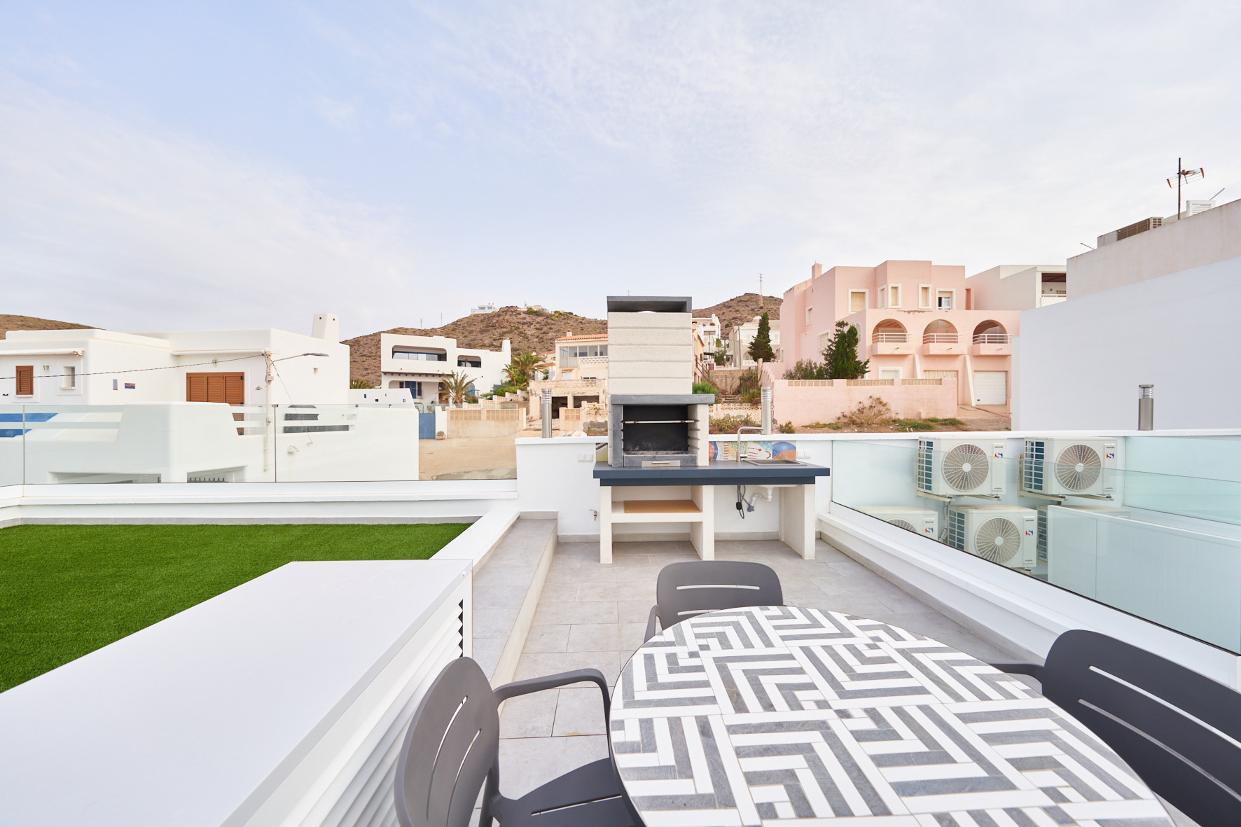 El apartamento en San Jose posee 1 dormitorio(s) y capacidad para 3 personas. Alojamiento de 40 m². Dispone de jardín, mobiliario jardín, terraza, lavadora, plancha, secador, balcón, calefacción bomba de calor, aire acondicionado solo en salón, piscina comunitaria, Televisión.La cocina americana, de vitrocerámica, está equipada con nevera, microondas, congelador, vajilla/cubertería, utensilios/cocina, cafetera y tostadora.