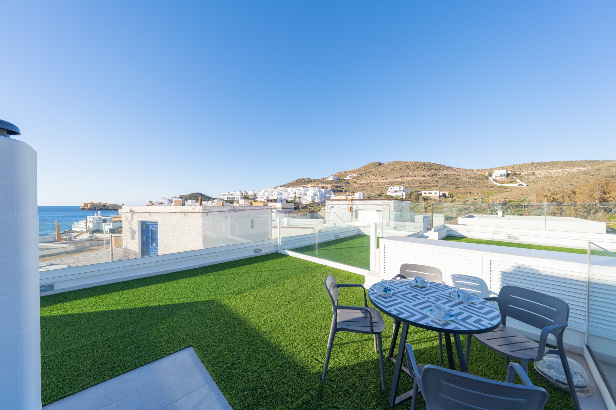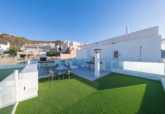 Precioso apartamento recién reformado en San José al lado de la playa. Dispone de 2 dormitorios, salón-cocina, baño y solárium con terraza y barbacoa. Ideal para pasar unas estupendas vacaciones en familia. A 50m a pie de la playa de La Calilla.