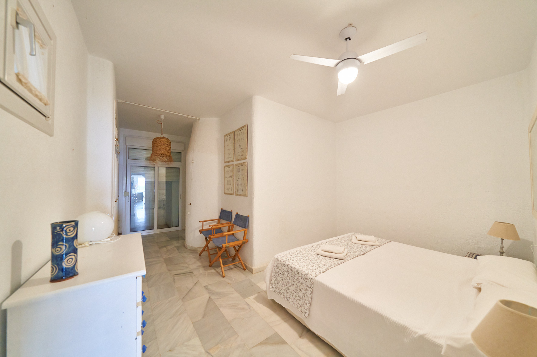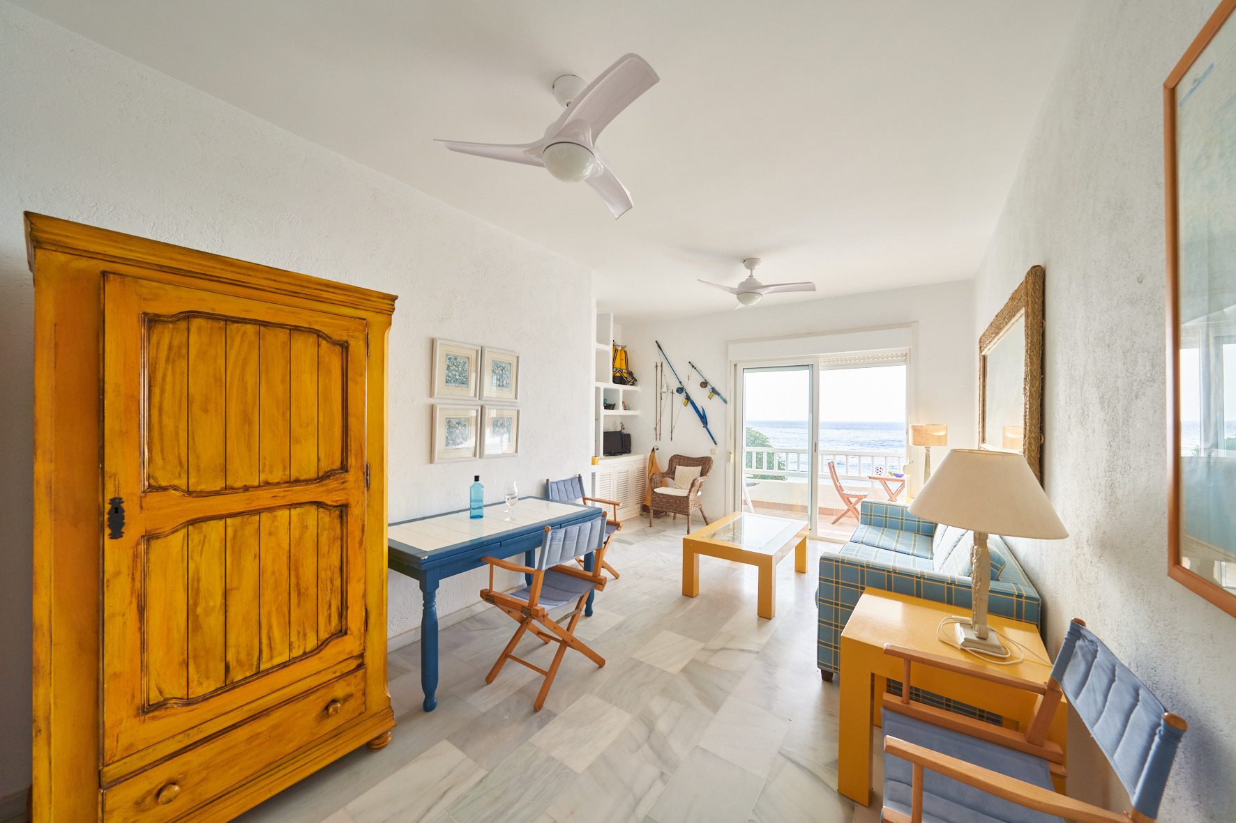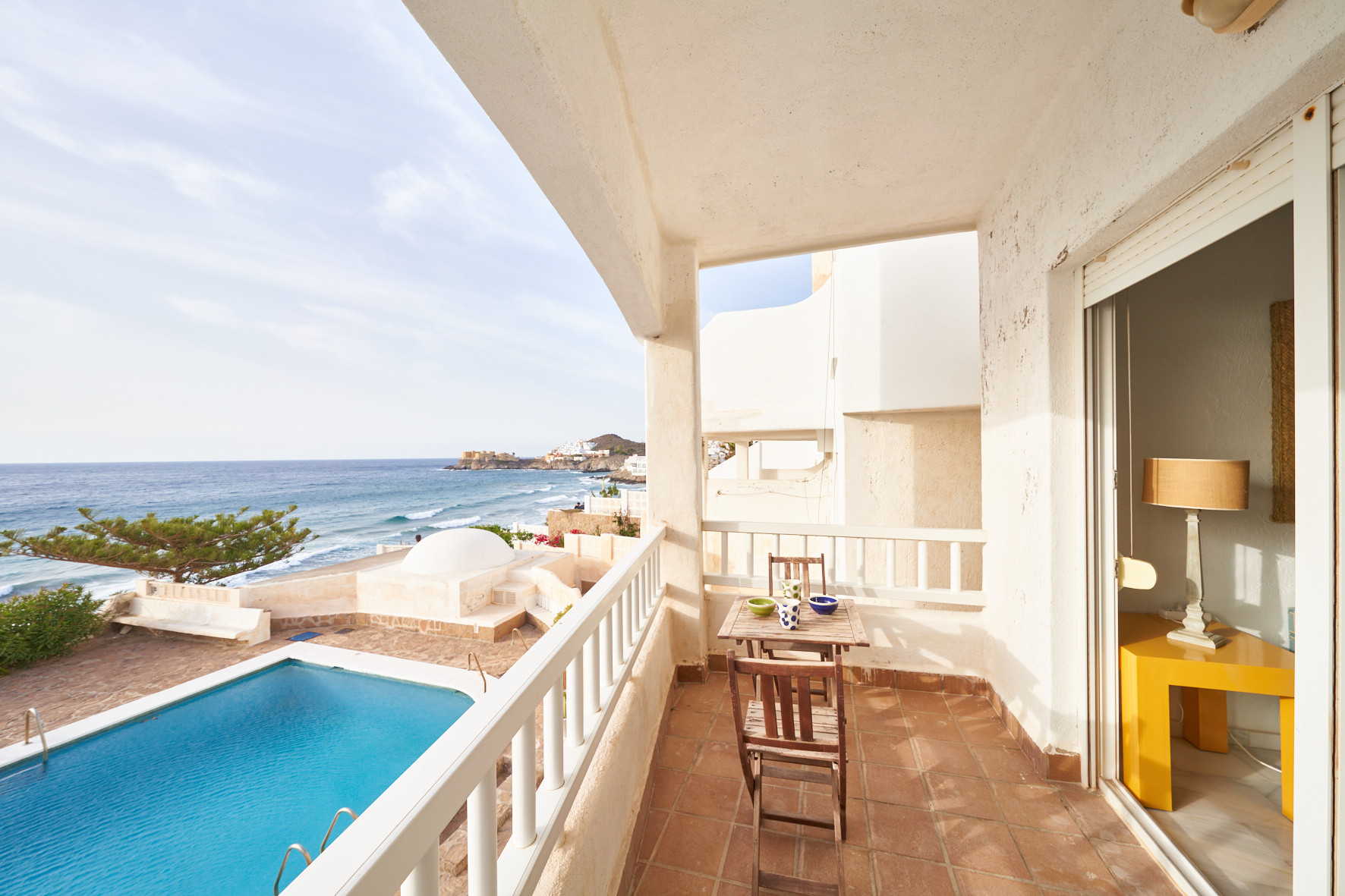 Estupendo apartamento con vistas al mar. Dispone de 1 dormitorio, sofá-cama en el salón, cocina totalmente equipada, piscina comunitaria y terraza con vistas al mar. Acceso directo a la playa desde la zona de la piscina, a 5 minutos a pie del centro de San José donde encontrará múltiples restaurantes, tiendas, supermercados…