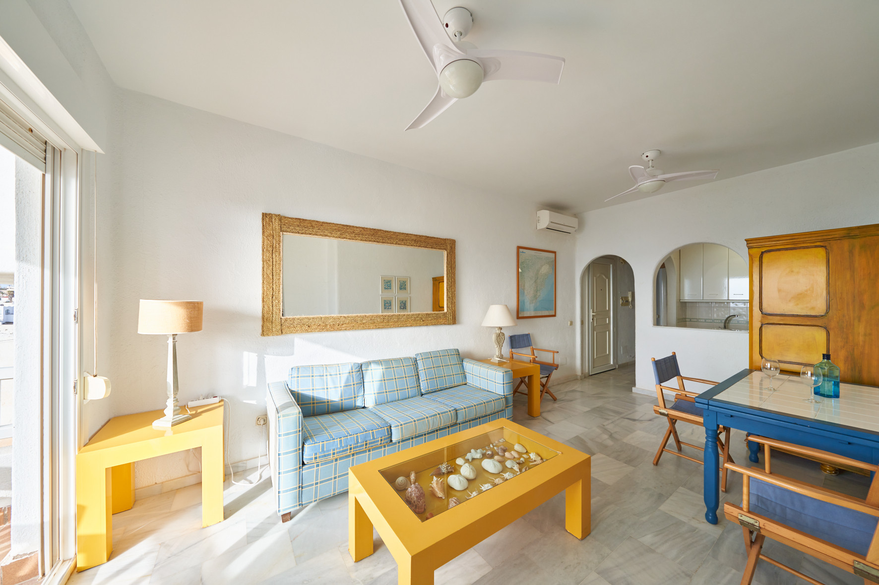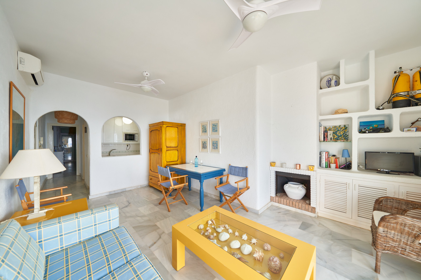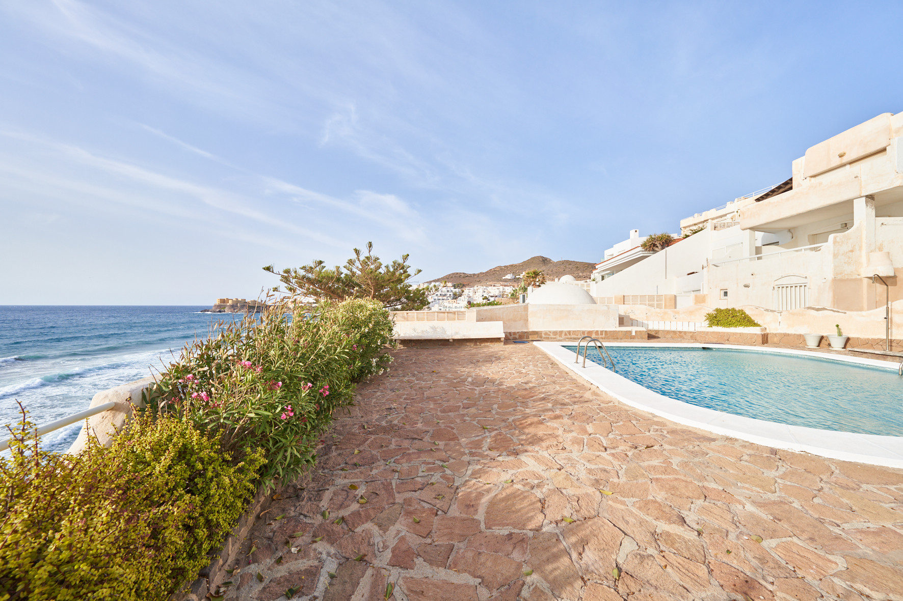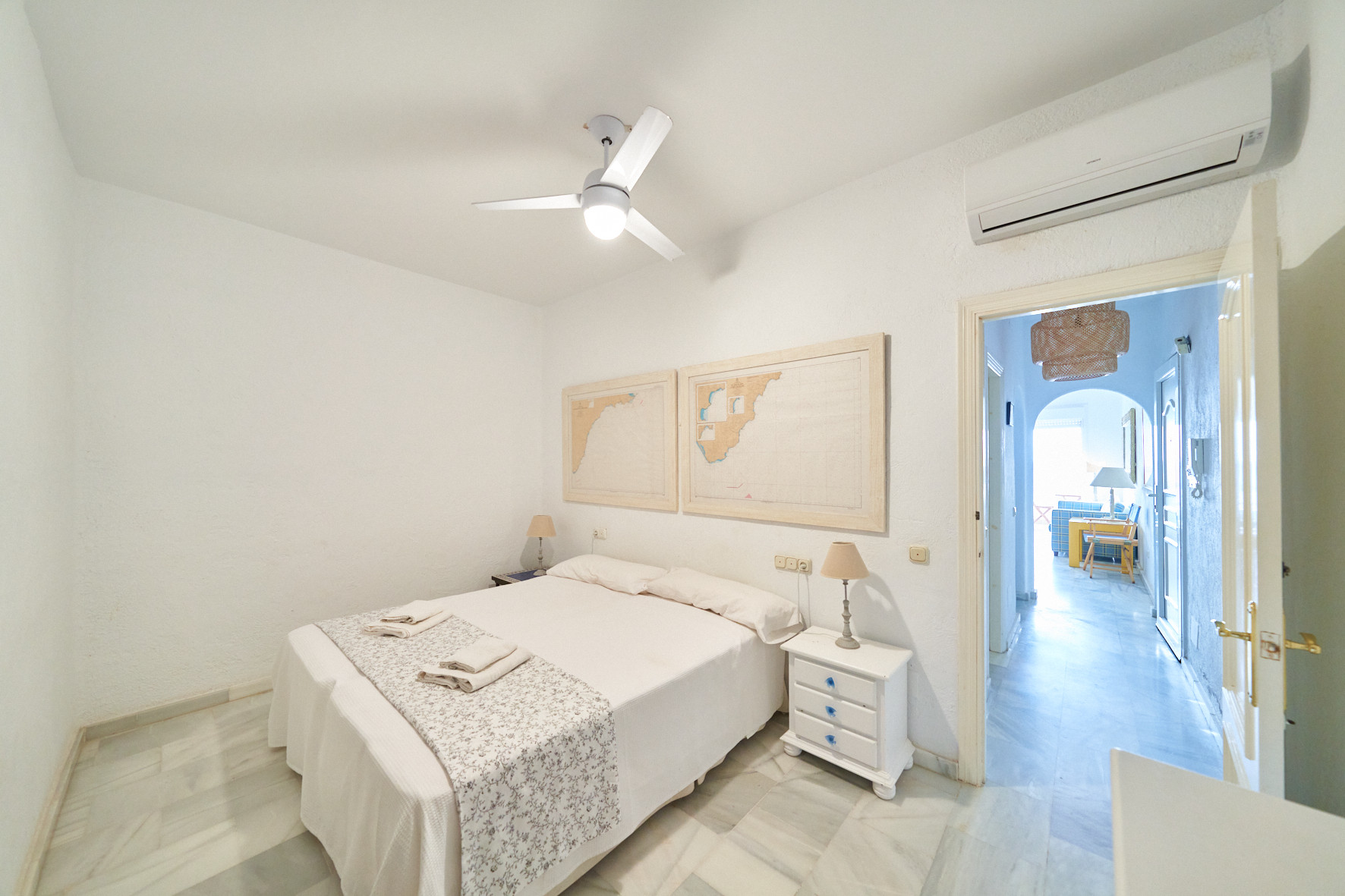 Estupendo apartamento con vistas al mar. Dispone de 1 dormitorio, sofá-cama en el salón, cocina totalmente equipada, piscina comunitaria y terraza con vistas al mar. Acceso directo a la playa desde la zona de la piscina, a 5 minutos a pie del centro de San José donde encontrará múltiples restaurantes, tiendas, supermercados…