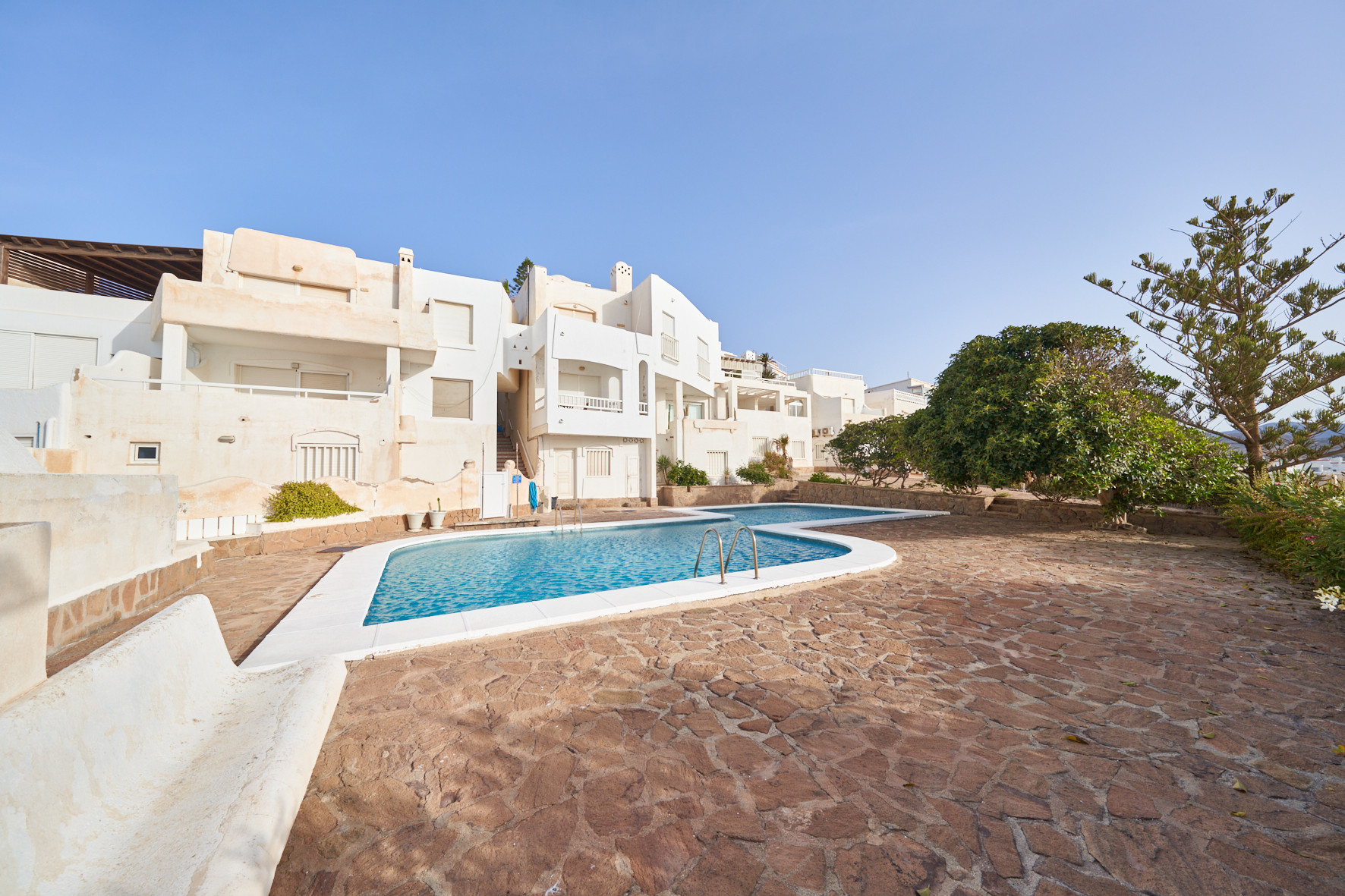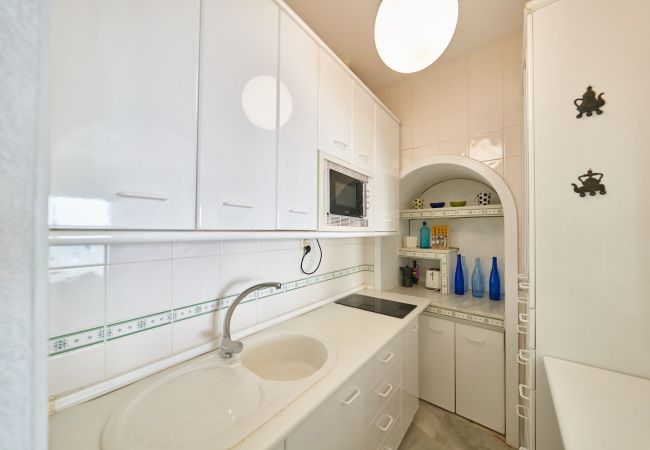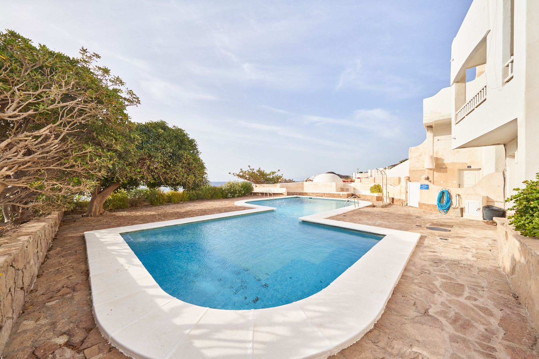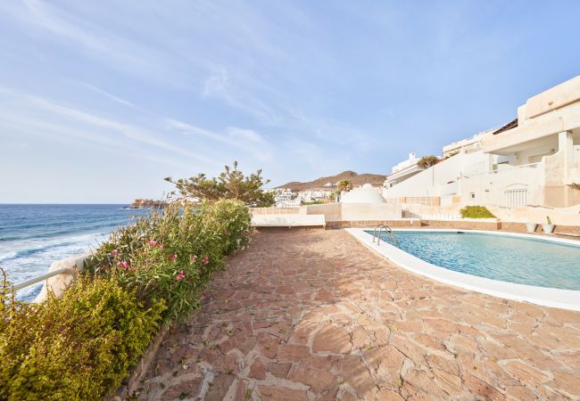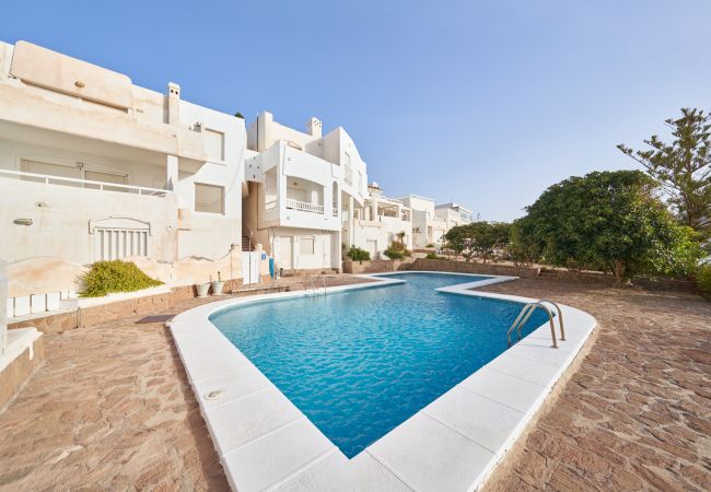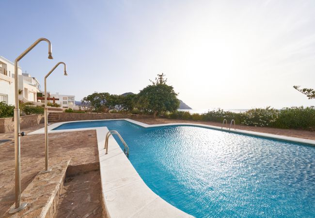 El apartamento en San Jose posee 1 dormitorio(s) y capacidad para 3 personas. Alojamiento de 40 m². Dispone de jardín, mobiliario jardín, terraza, lavadora, plancha, secador, balcón, calefacción bomba de calor, aire acondicionado solo en salón, piscina comunitaria, Televisión.La cocina americana, de vitrocerámica, está equipada con nevera, microondas, congelador, vajilla/cubertería, utensilios/cocina, cafetera y tostadora.