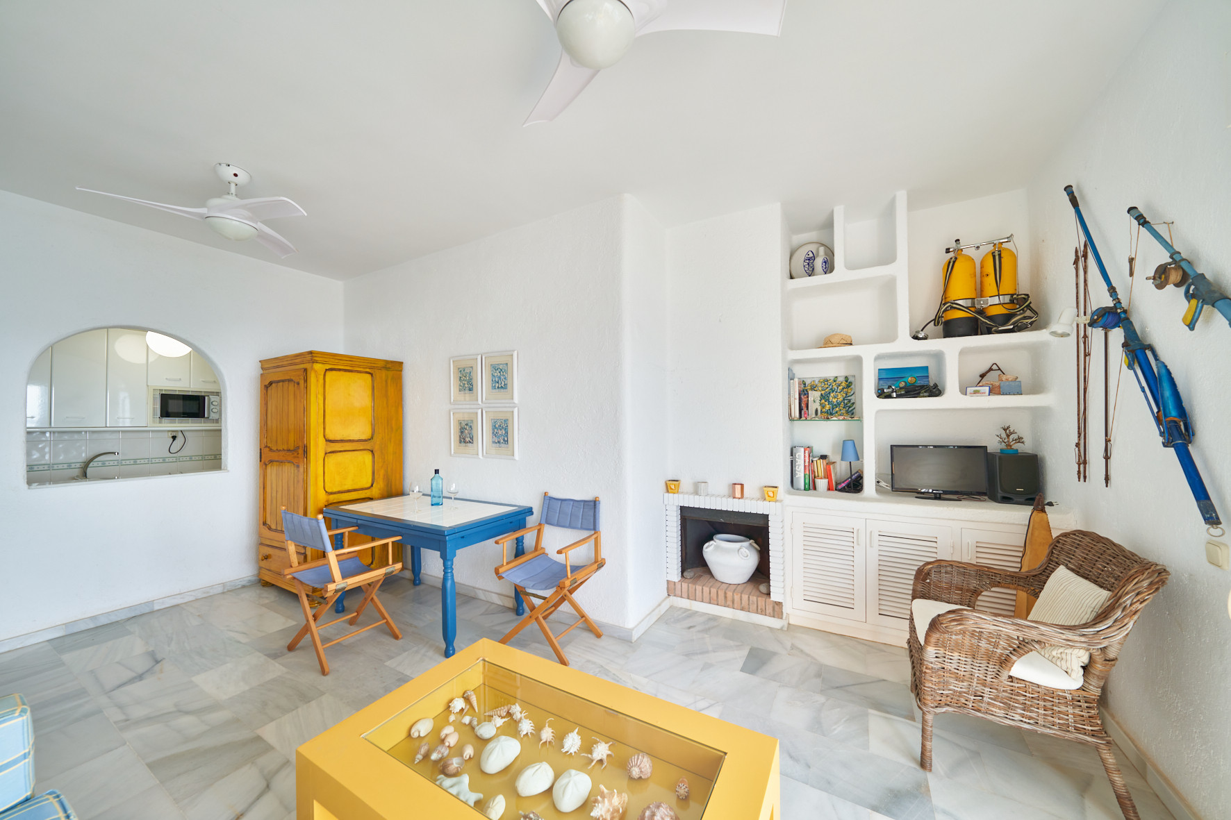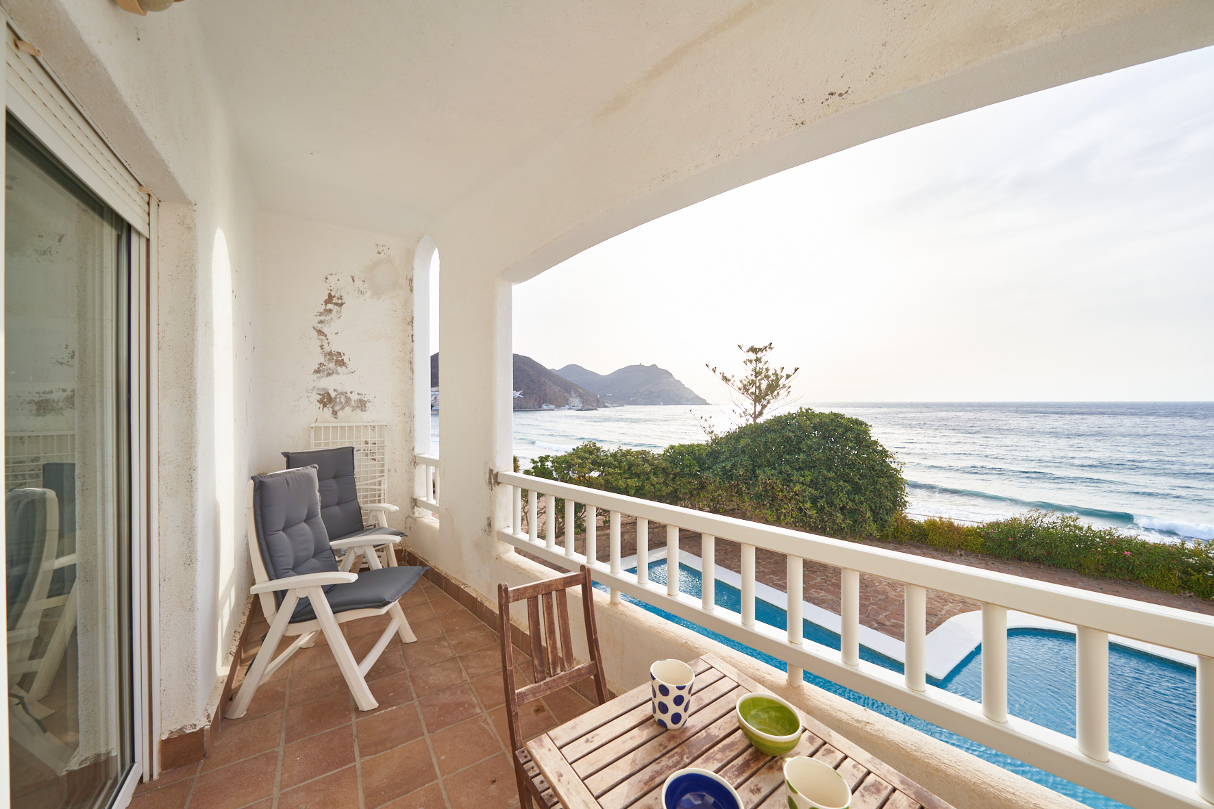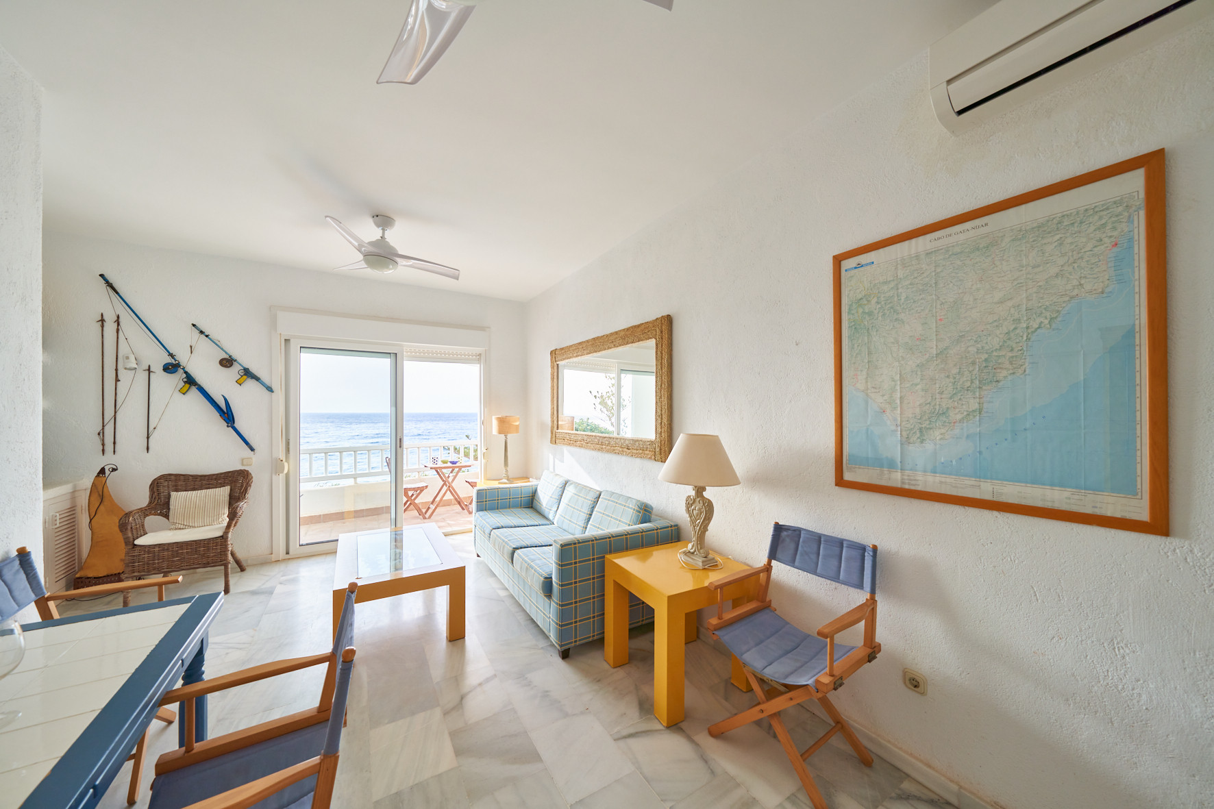 El apartamento en San Jose posee 1 dormitorio(s) y capacidad para 3 personas. Alojamiento de 40 m². Dispone de jardín, mobiliario jardín, terraza, lavadora, plancha, secador, balcón, calefacción bomba de calor, aire acondicionado solo en salón, piscina comunitaria, Televisión.La cocina americana, de vitrocerámica, está equipada con nevera, microondas, congelador, vajilla/cubertería, utensilios/cocina, cafetera y tostadora.