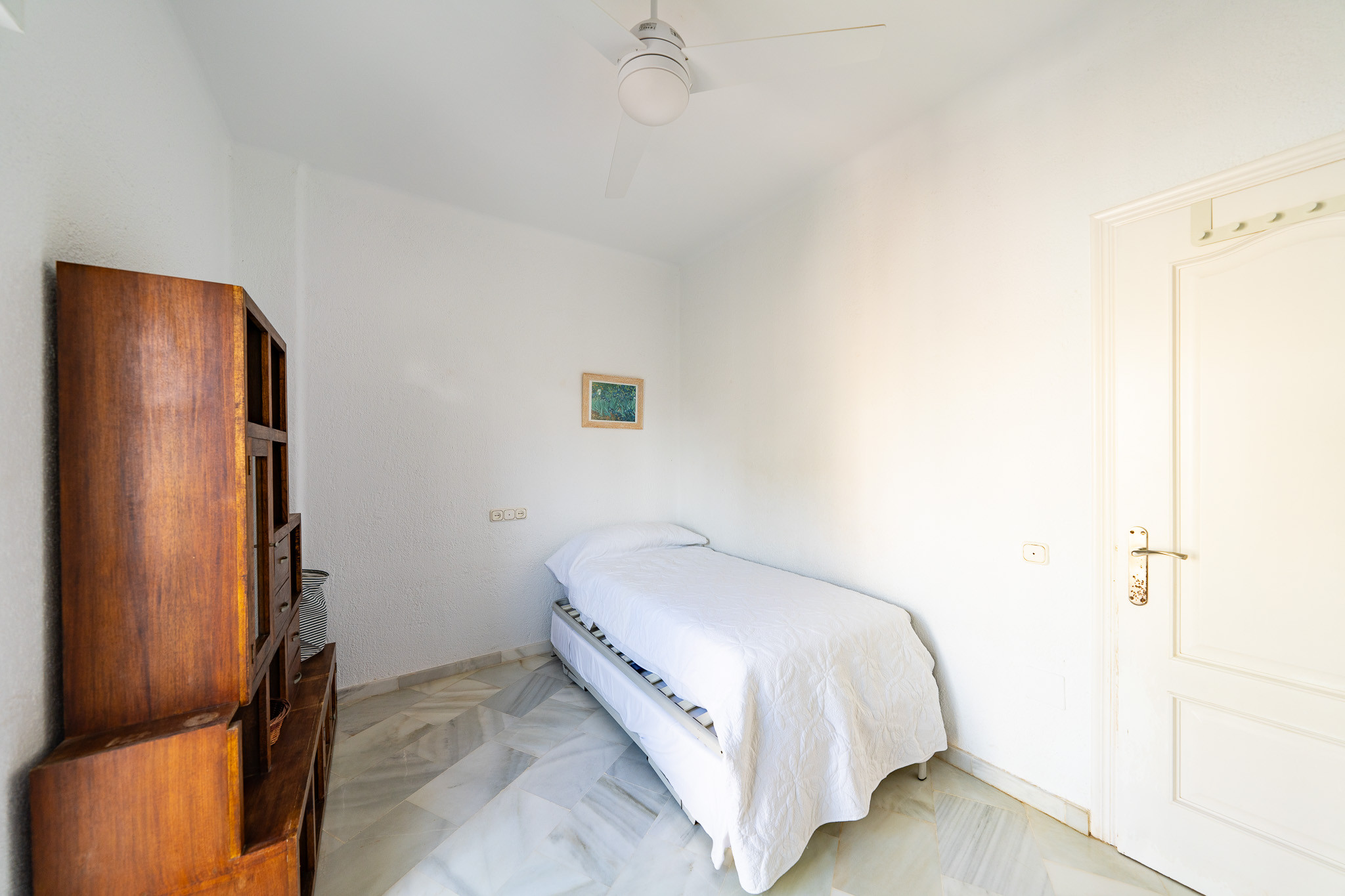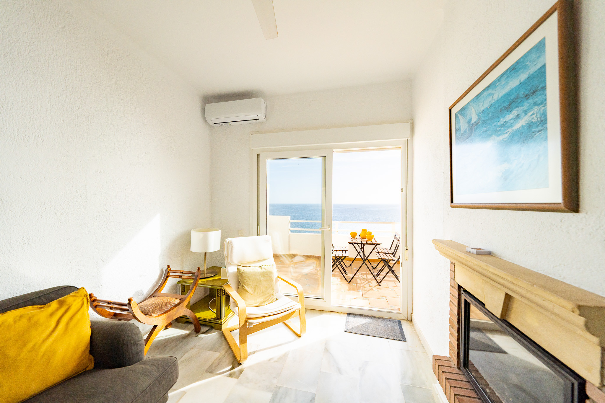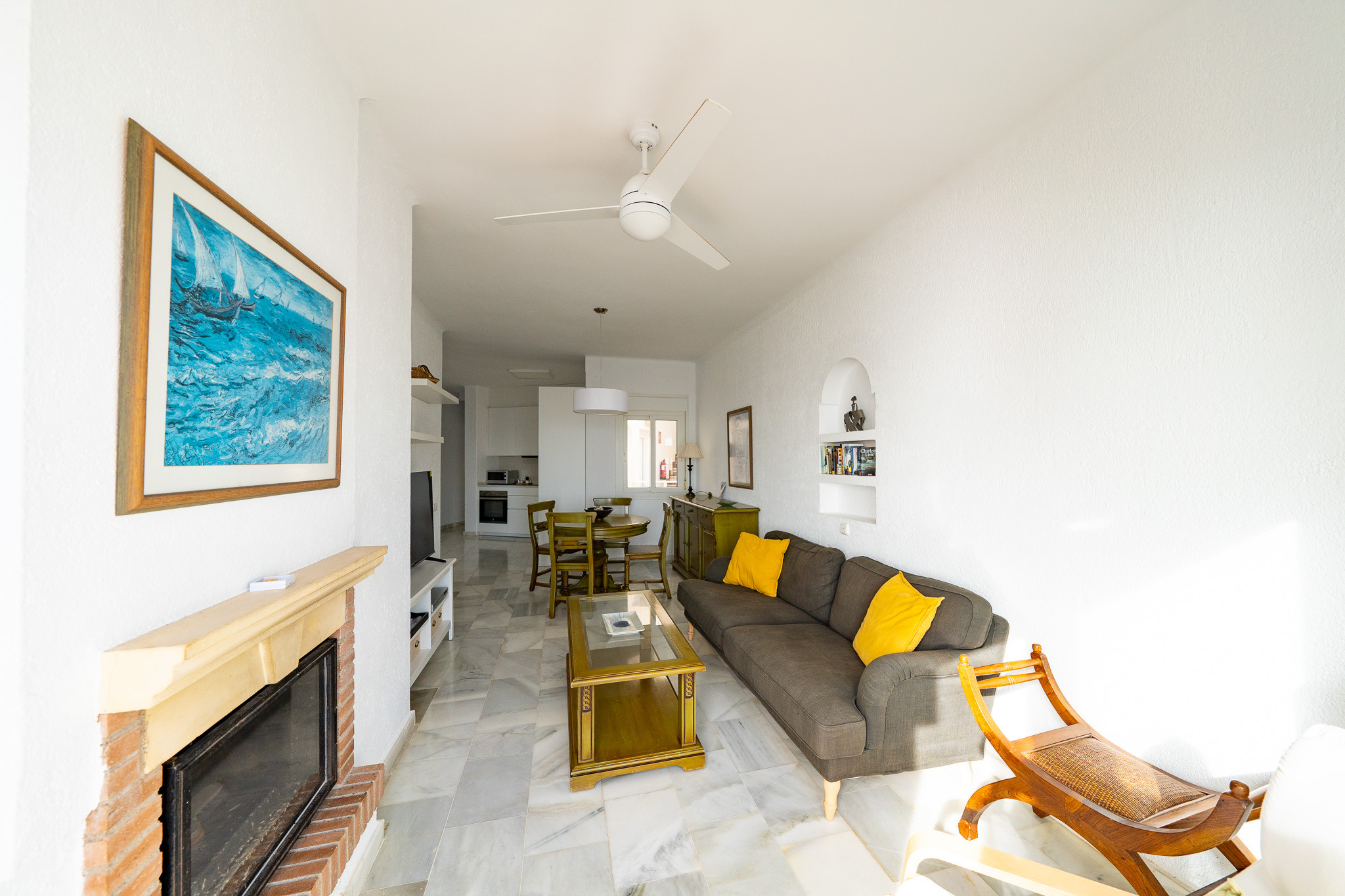 Apartamento en planta ático. Tiene dos dormitorios, uno con cama de 150 y baño en suite y un segundo dormitorio con dos camas de 90 cm y baño con ducha. A/A en todas las estancias.Terraza con unas vistas espectaculares de la Bahía de San José.
