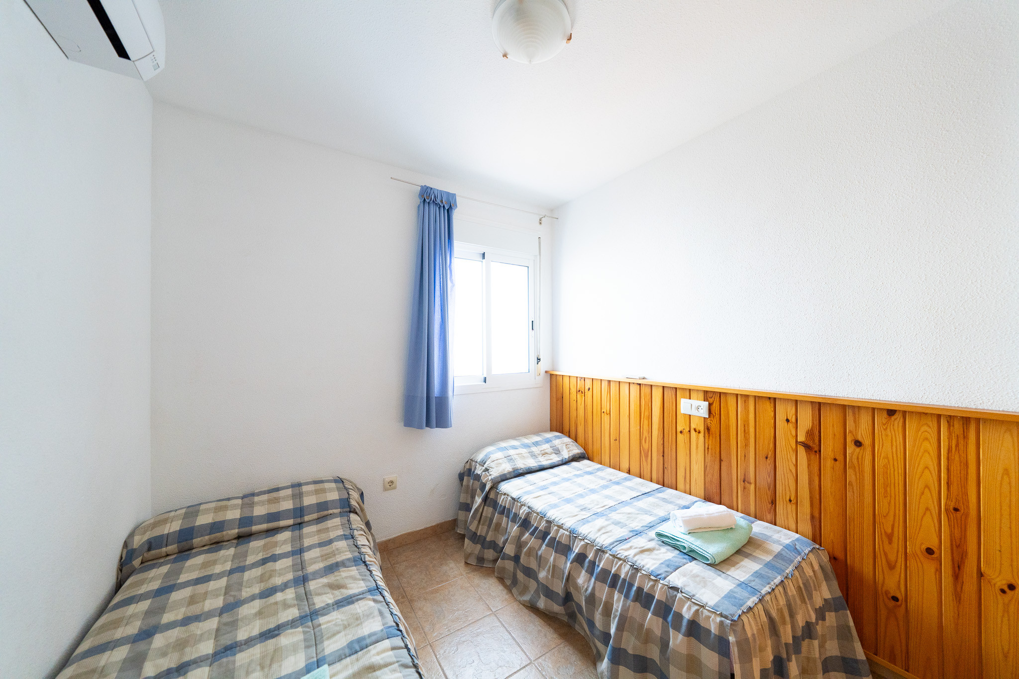El apartamento en San José posee 2 dormitorio(s) y capacidad para 4 personas. Alojamiento de 50 m². Dispone de mobiliario jardín, 12 m² de terraza, lavadora, plancha, secador, calefacción bomba de calor, aire acondicionado, piscina comunitaria, garaje en mismo edificio, Televisión.La cocina independiente, de vitrocerámica, está equipada con nevera, congelador, vajilla/cubertería, utensilios/cocina, cafetera y tostadora.