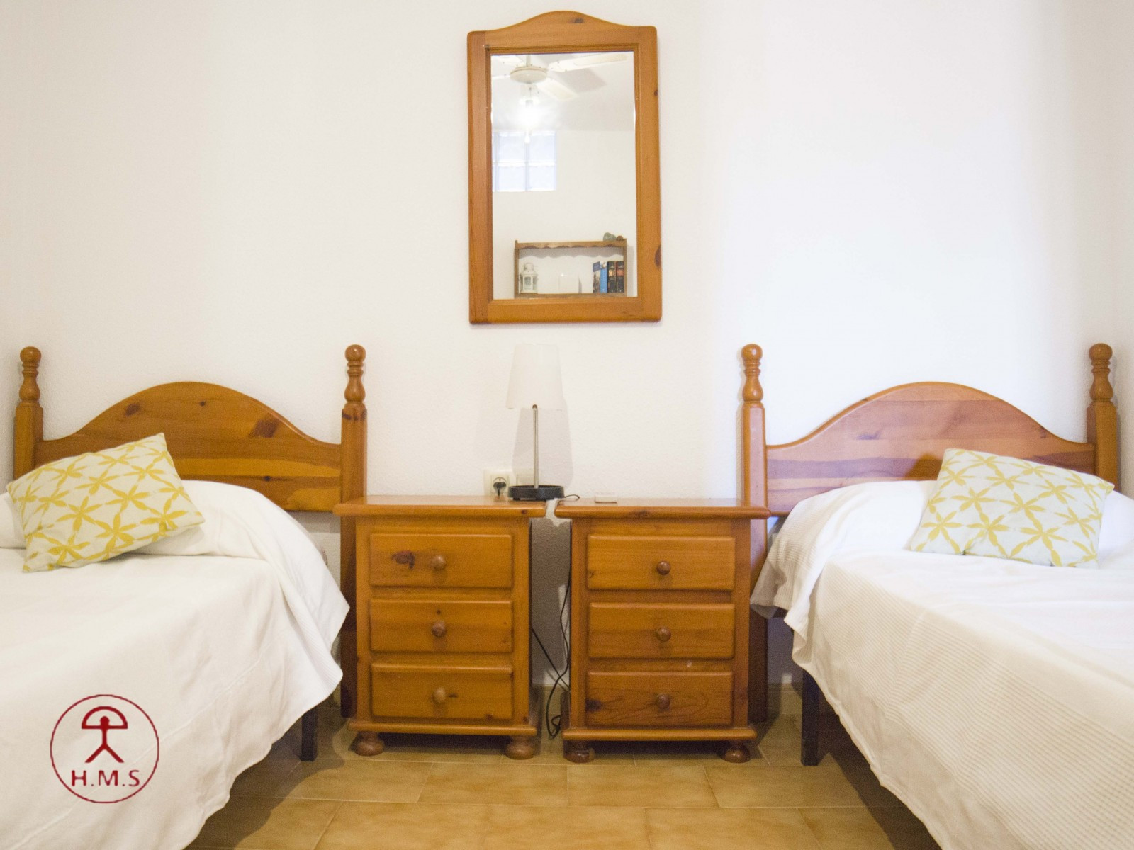 El apartamento en San Jose posee 2 dormitorio(s) y capacidad para 4 personas. Alojamiento de 40 m². Dispone de jardín, mobiliario jardín, 12 m² de terraza, lavadora, barbacoa, chimenea, plancha, acceso internet (wifi), secador, balcón, calefacción bomba de calor, aire acondicionado, piscina comunitaria, 1 Televisor. La cocina americana, de vitrocerámica, está equipada con nevera, microondas, horno, congelador, vajilla/cubertería, utensilios/cocina, cafetera, tostadora y hervidor de agua.