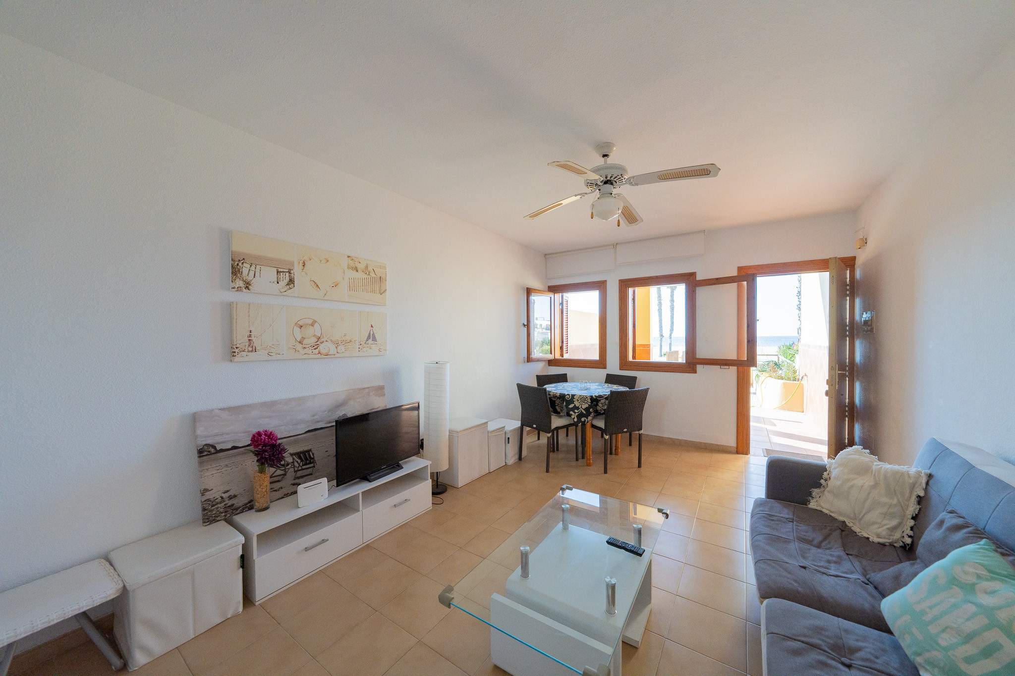 Apartamento en San José a 150m de la playa, el paseo marítimo y el puerto con plaza de aparcamiento justo en la puerta. Capacidad para 6 personas, cocina totalmente equipada y terraza amueblada . Ideal para pasar una estupendas vacaciones en familia. Aire Acondicionado en salón y dormitorio principal.