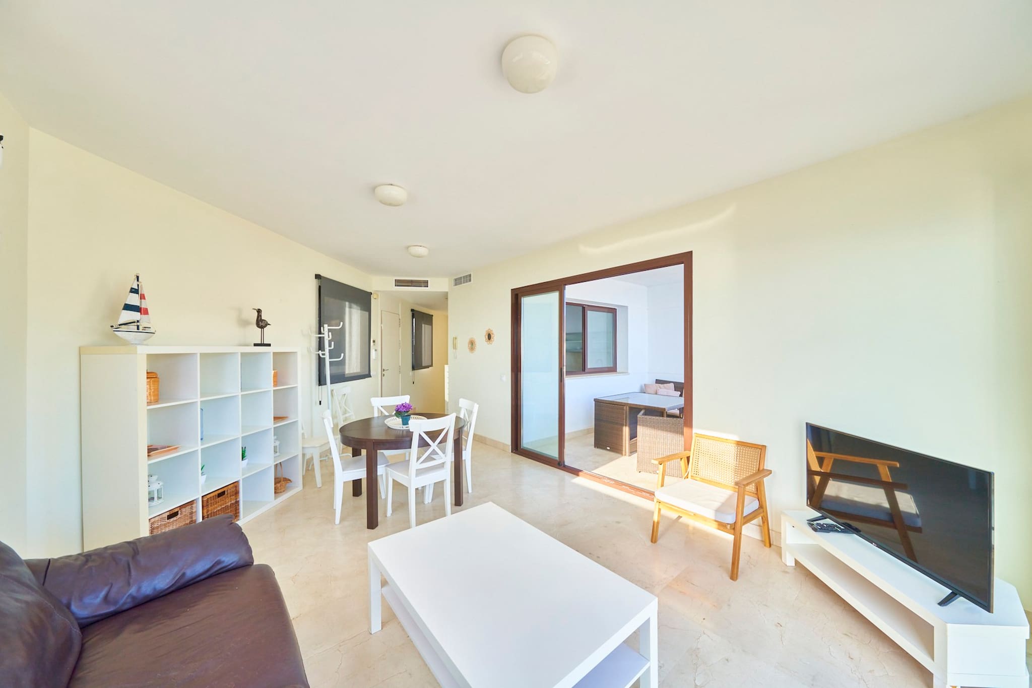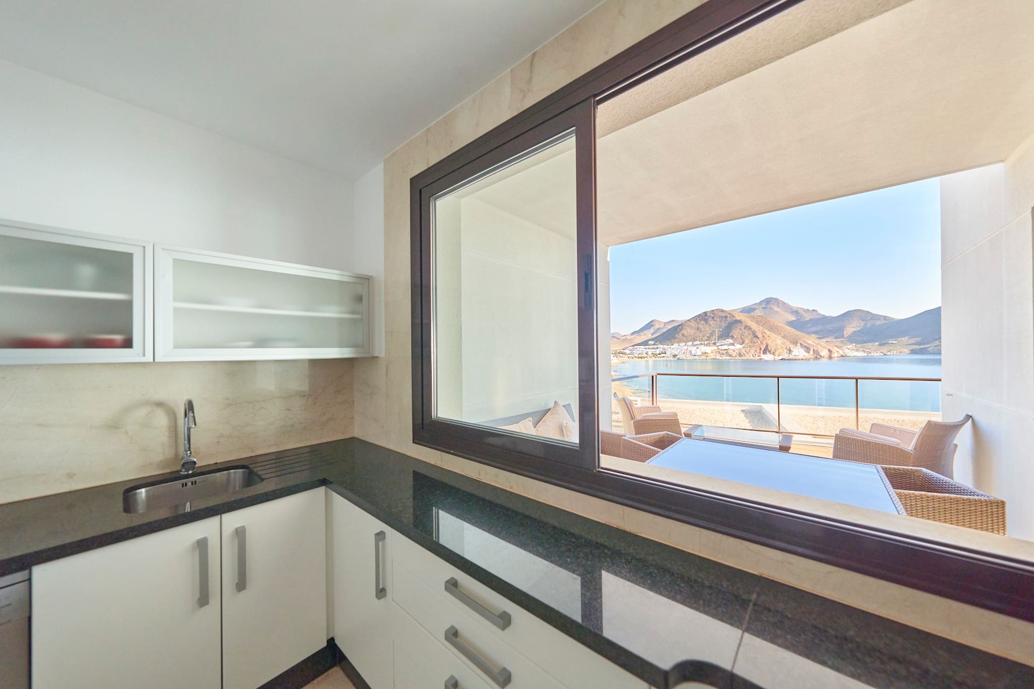 1 aseo, 2 baños, Aire acondicionado en todas las estancias, Aparcamiento disponible, Cafetera de cápsulas, Cerca de la Playa, Cocina totalmente equipada, Comedor, Frigorifico, Lavadora, Lavavajillas, microondas, Piscina comunitaria, Plancha de ropa, Sábanas y toallas de casa, Secador de pelo, Televisión, Terraza con vistas al mar, Tostador.