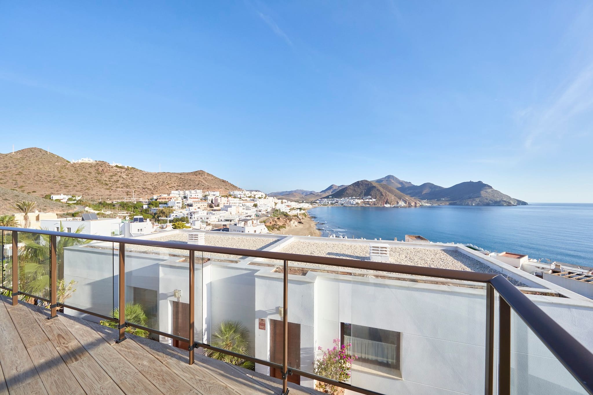 Estupendo chalet en San José, con increíble vistas al mar y piscina comunitaria. Dispone de dos dormitorios con baños en suite, un aseo en la planta principal, cocina totalmente equipada, terraza con muebles de exterior y plaza de aparcamiento. Ideal para pasar unas fantásticas vacaciones en familia.