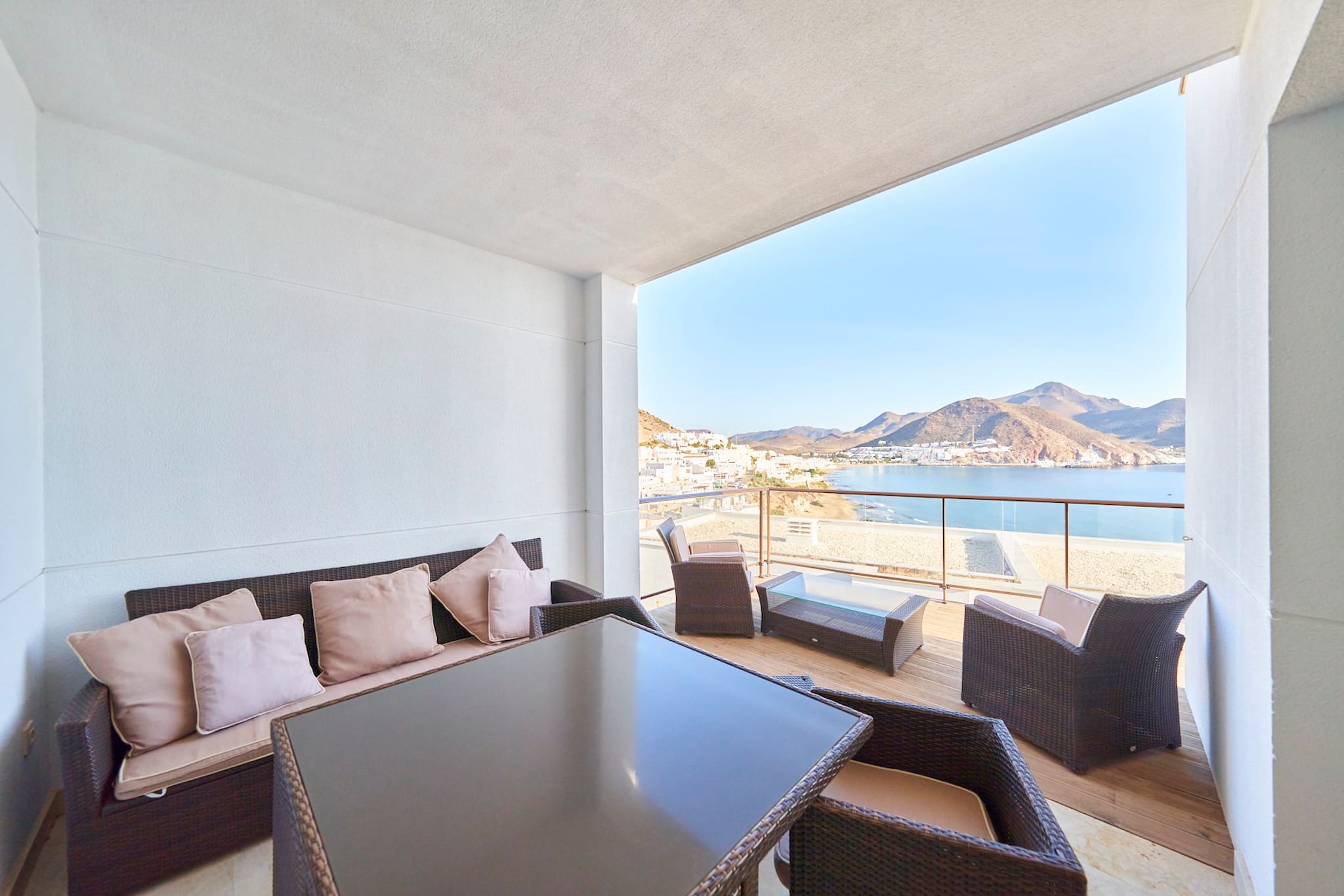 Magnífico apartamento recién reformado en San José al lado de la playa. Dispone de 1 dormitorio, salón-cocina con sofá-cama, baño y solárium con terraza y barbacoa. Ideal para pasar unas estupendas vacaciones en familia. A 50m a pie de la playa de La Calilla.