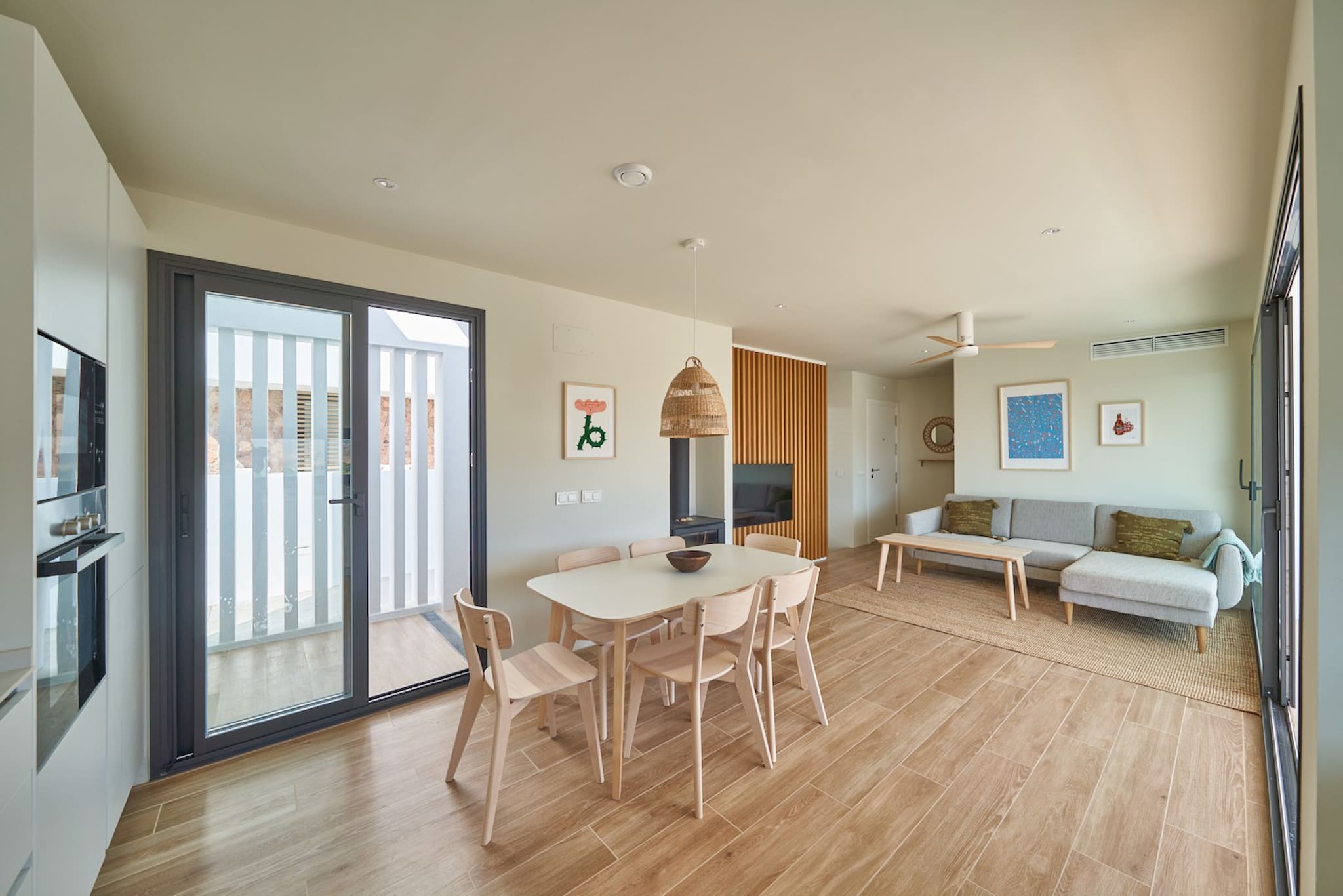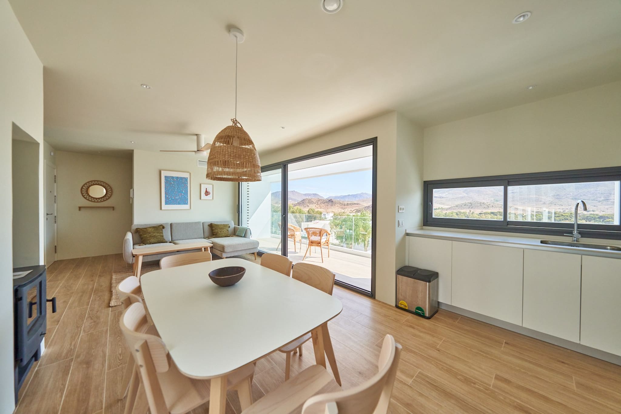 Casa de ensueño con vistas privilegiadas al mar y al corazón del parque natural. Nueva construcción, ubicada en zona tranquila de San José, a solo 10 minutos de la playa y el centro. Es un lugar ideal para desconectar o pasar unas vacaciones en familia. 3 dormitorios, 2 baños y 1 aseo, cocina completa, plaza de garaje, terraza con vistas, un solárium espectacular con barbacoa y chimenea para el invierno. Situado en una urbanización con muchísimo encanto que cuenta con piscina y zonas comunitarias.