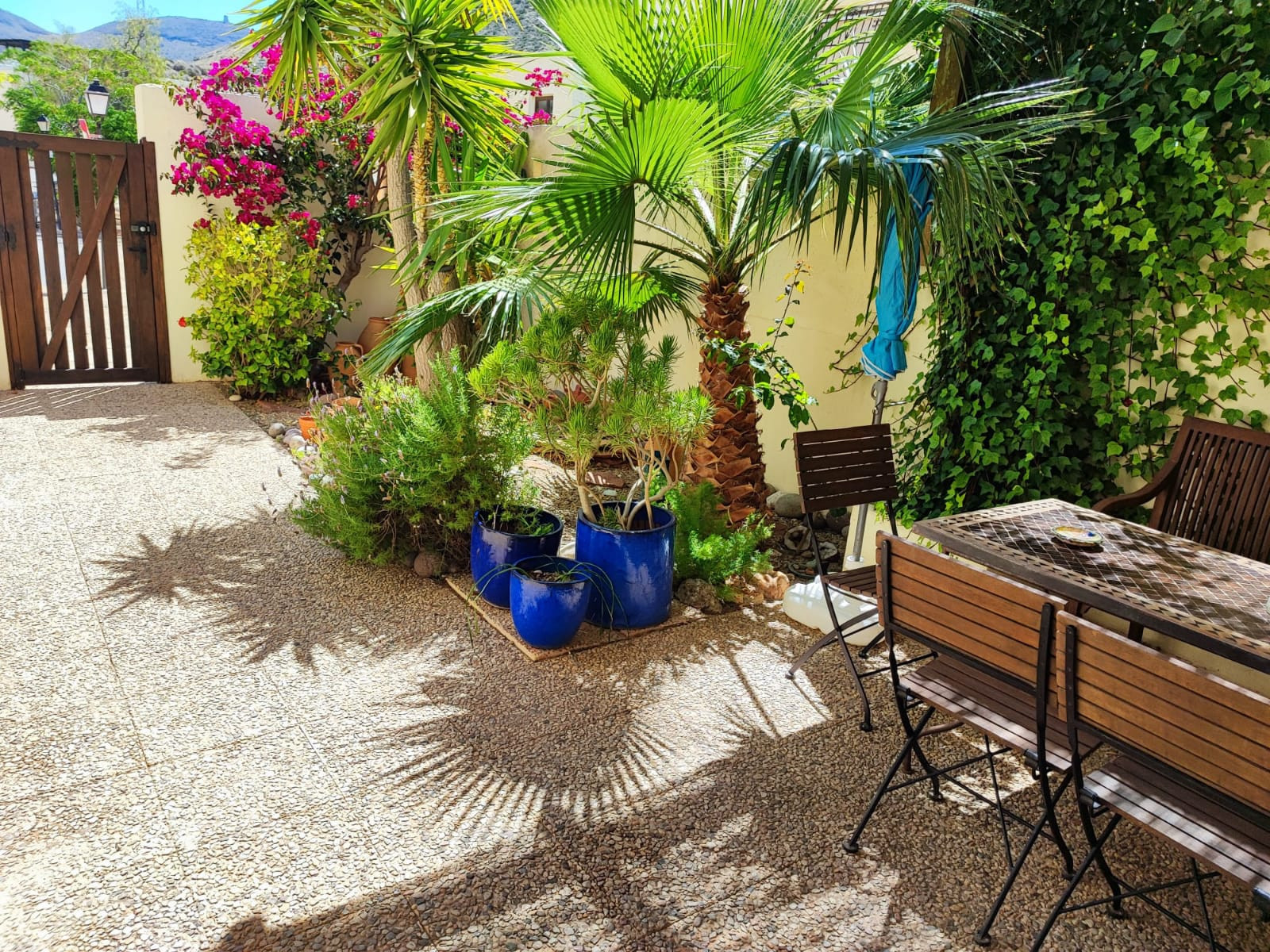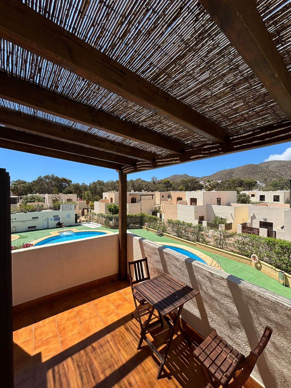 La casa adosada en San Jose posee 2 dormitorio(s) y capacidad para 4 personas. Alojamiento de 130 m². Dispone de jardín, mobiliario jardín, 30 m² de terraza, lavadora, plancha, acceso internet (wifi), secador, aire acondicionado, piscina comunitaria, parking aire libre en mismo edificio, mosquiteras en todo el alojamiento, 1 Televisor. La cocina americana, de vitrocerámica, está equipada con nevera, microondas, horno, congelador, vajilla/cubertería, utensilios/cocina, cafetera, tostadora, hervidor de agua y exprimidor.