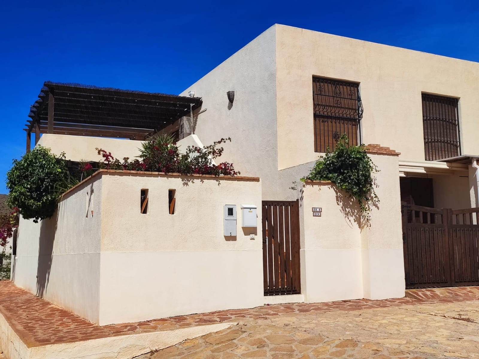 La casa adosada en San Jose posee 2 dormitorio(s) y capacidad para 4 personas. Alojamiento de 90 m². Dispone de lavadora, plancha, acceso internet (wifi), secador, calefacción bomba de calor, aire acondicionado, piscina comunitaria, parking aire libre en mismo edificio, Televisión.La cocina independiente, de vitrocerámica, está equipada con nevera, congelador, vajilla/cubertería, utensilios/cocina y tostadora.