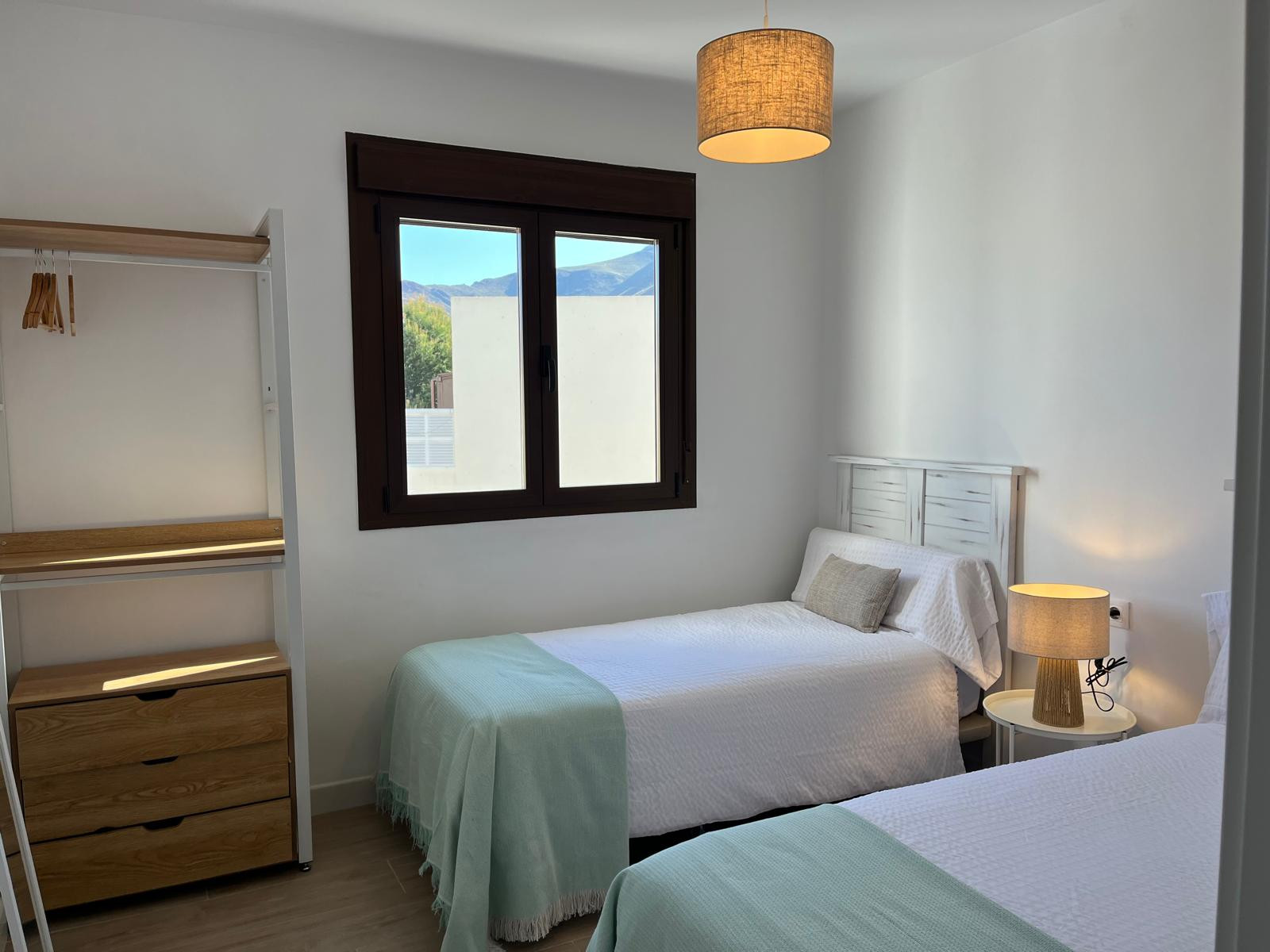 Alquiler de apartamento Dúplex de dos dormitorios y un baño, muy cerca de la playa y del centro, posee una estupenda terraza con unas impresionantes vistas a la bahía de San José, la casa está completa de menaje y pequeños electrodomésticos, lavadora. Dispone de sábanas y toallas de casa.
