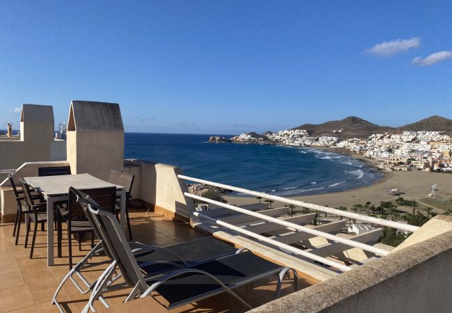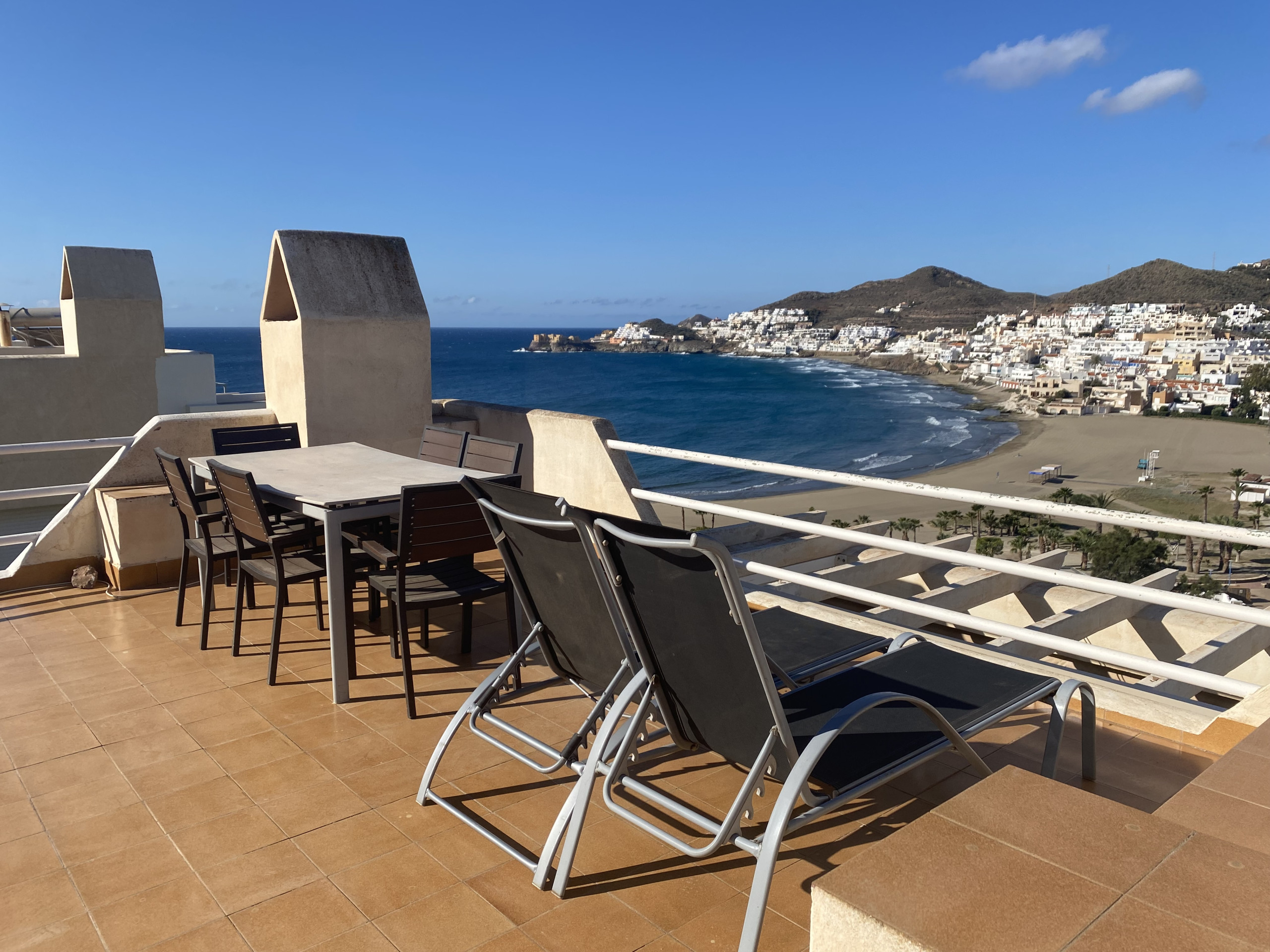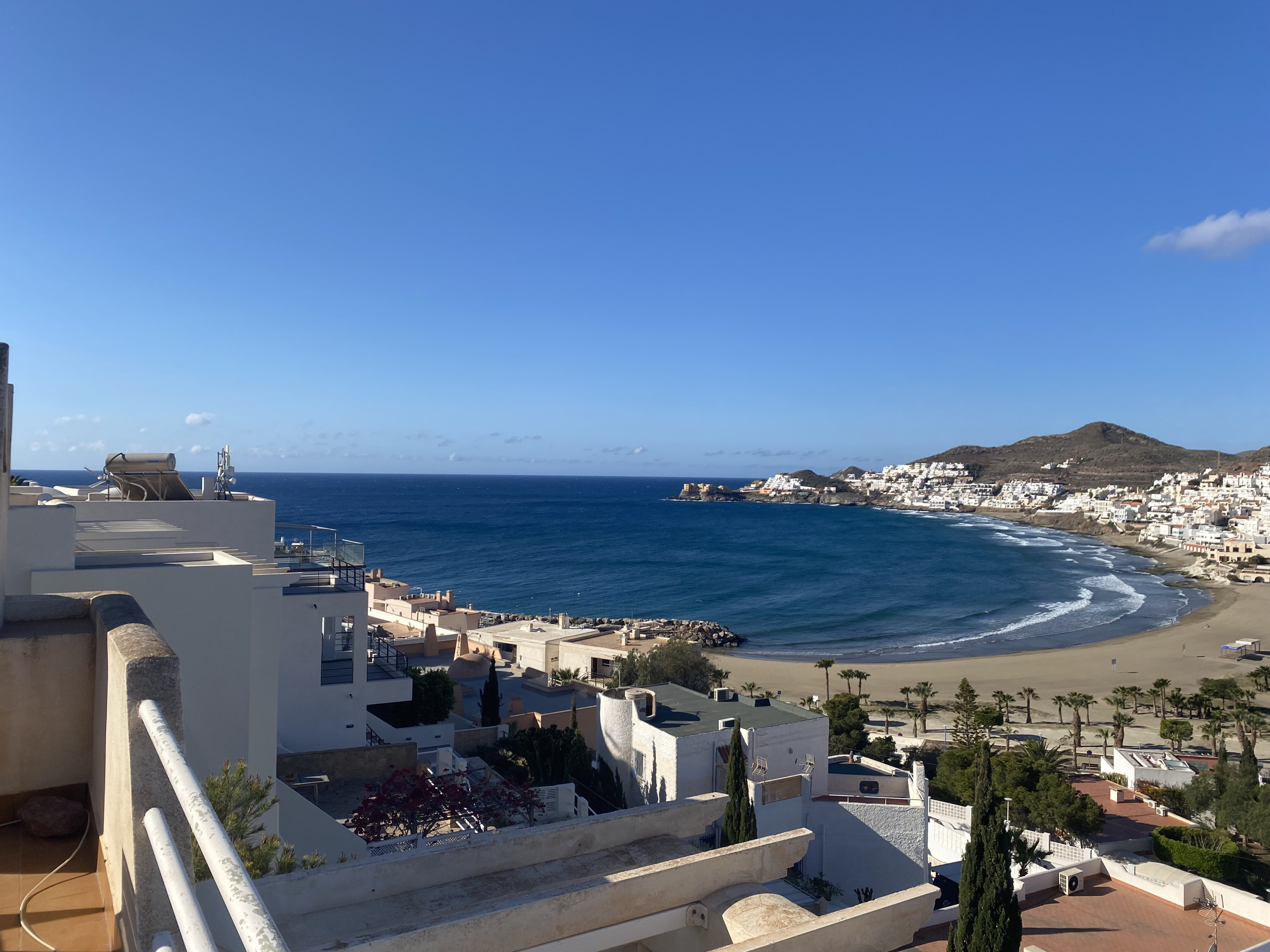 Esta casa disfruta de unas fantásticas vistas de la bahía de San José, ademas de estar cerca de las tiendas y de la playa. Dispone de una gran terraza/solarium en la azotea con vistas panorámicas. La casa tiene unas calidades de lujo, microondas, lavavajillas, Aire Acondicionado (con bomba de calor). Wifi Gratis. Puede disfrutar de varias terrazas, en el salón, la azotea.