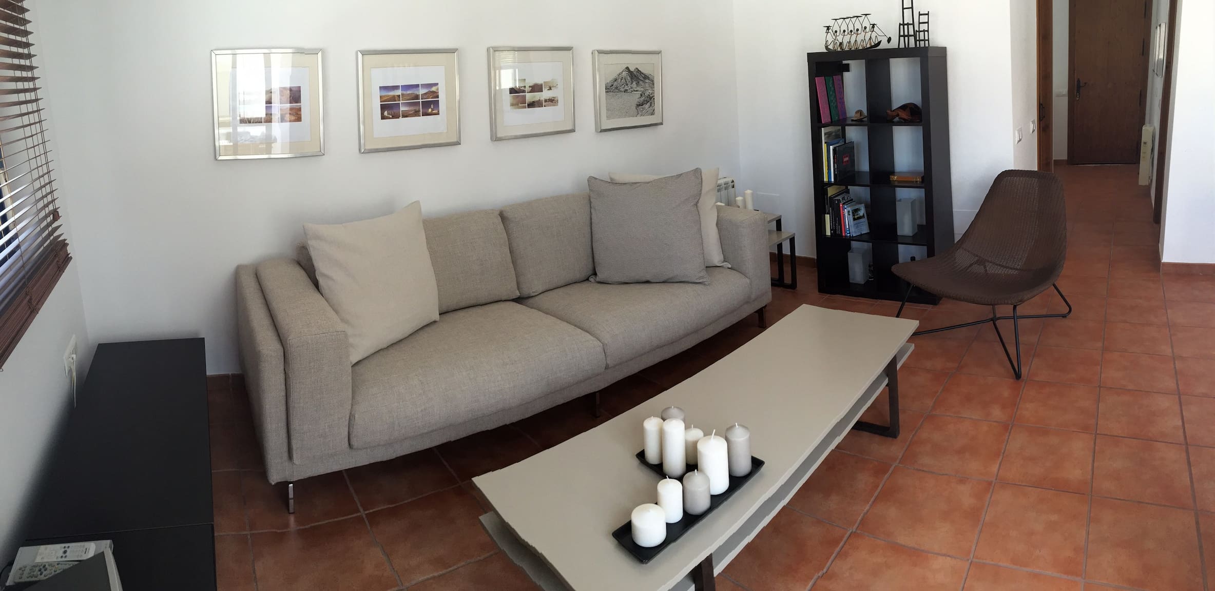 Preciosa casa muy equipada de obra nueva ubicada en una zona tranquila de San José ideal para pasar unas vacaciones en familia. 3 dormitorios, 2 baños y un aseo, plaza de garaje, jardín, terraza y solárium con barbacoa. Urbanización con piscina y zonas comunitarias.