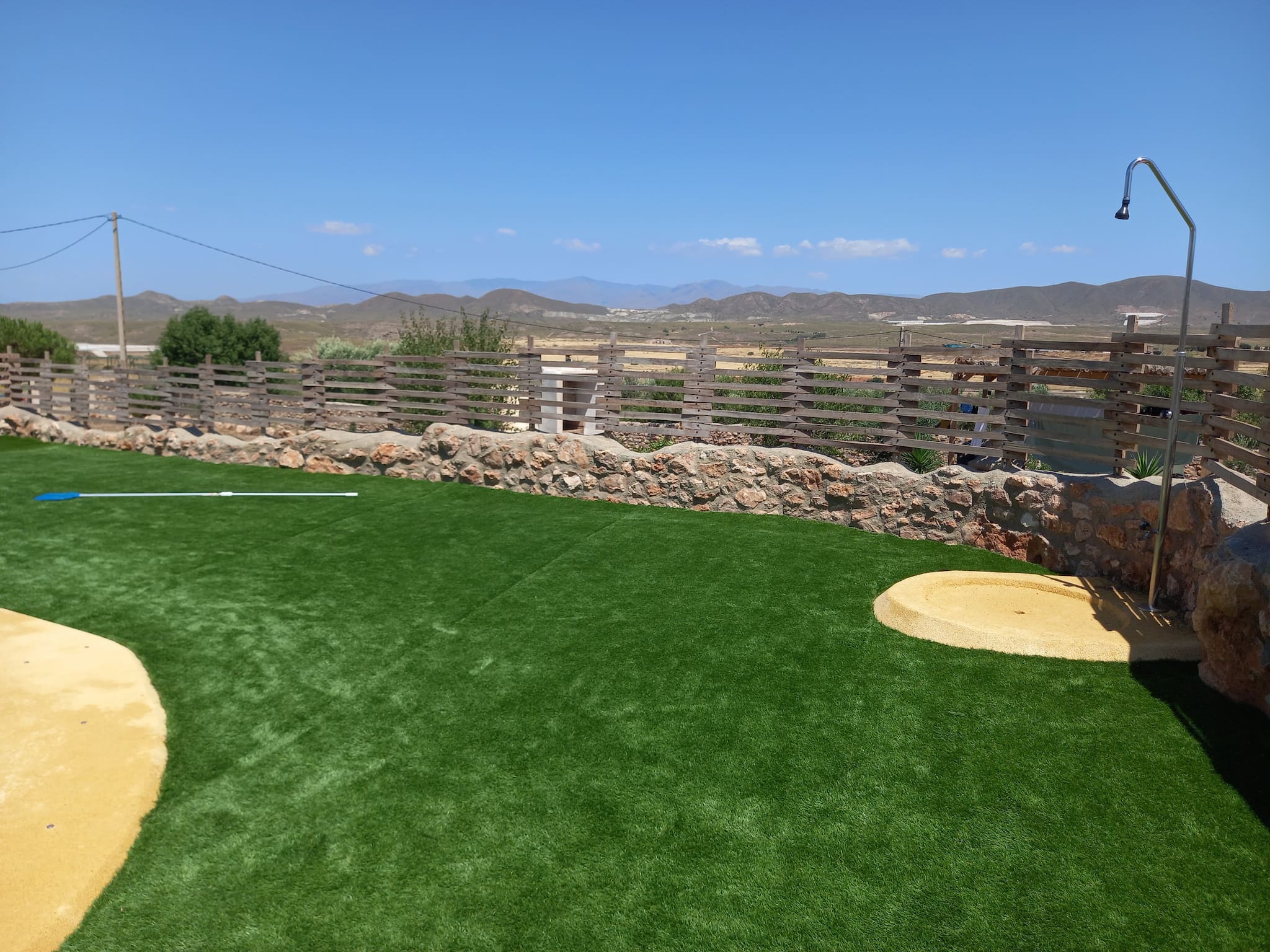 Disfrutarán del exterior amplio y ajardinado de éste alojamiento en Los Albaricoques, escenario de grandes películas del Spaguetti Western donde se rodaron las mejores escenas de "La muerte tenía un precio" ó "Por un puñado de dólares". Ideal para familias con hijos/as.