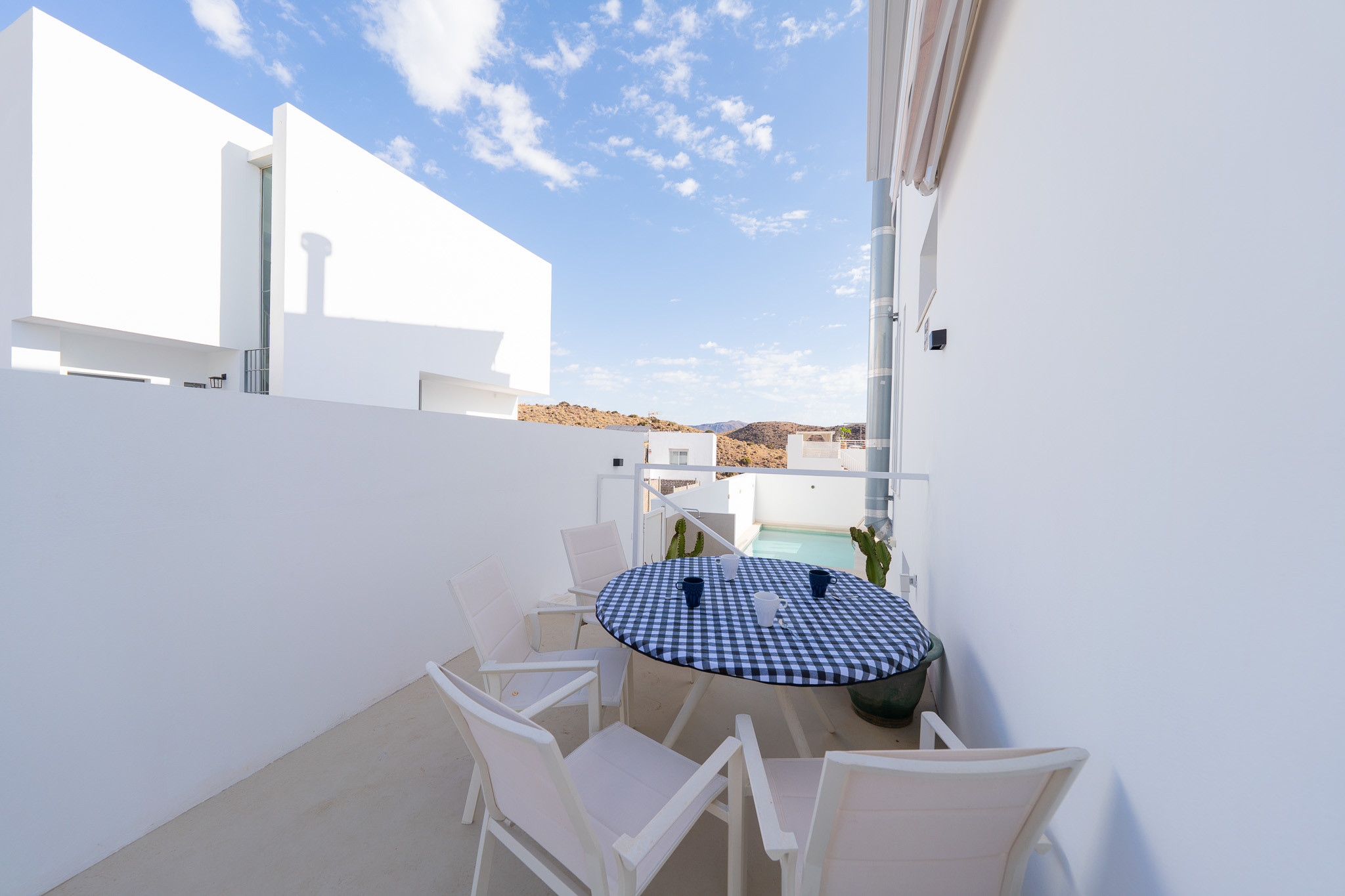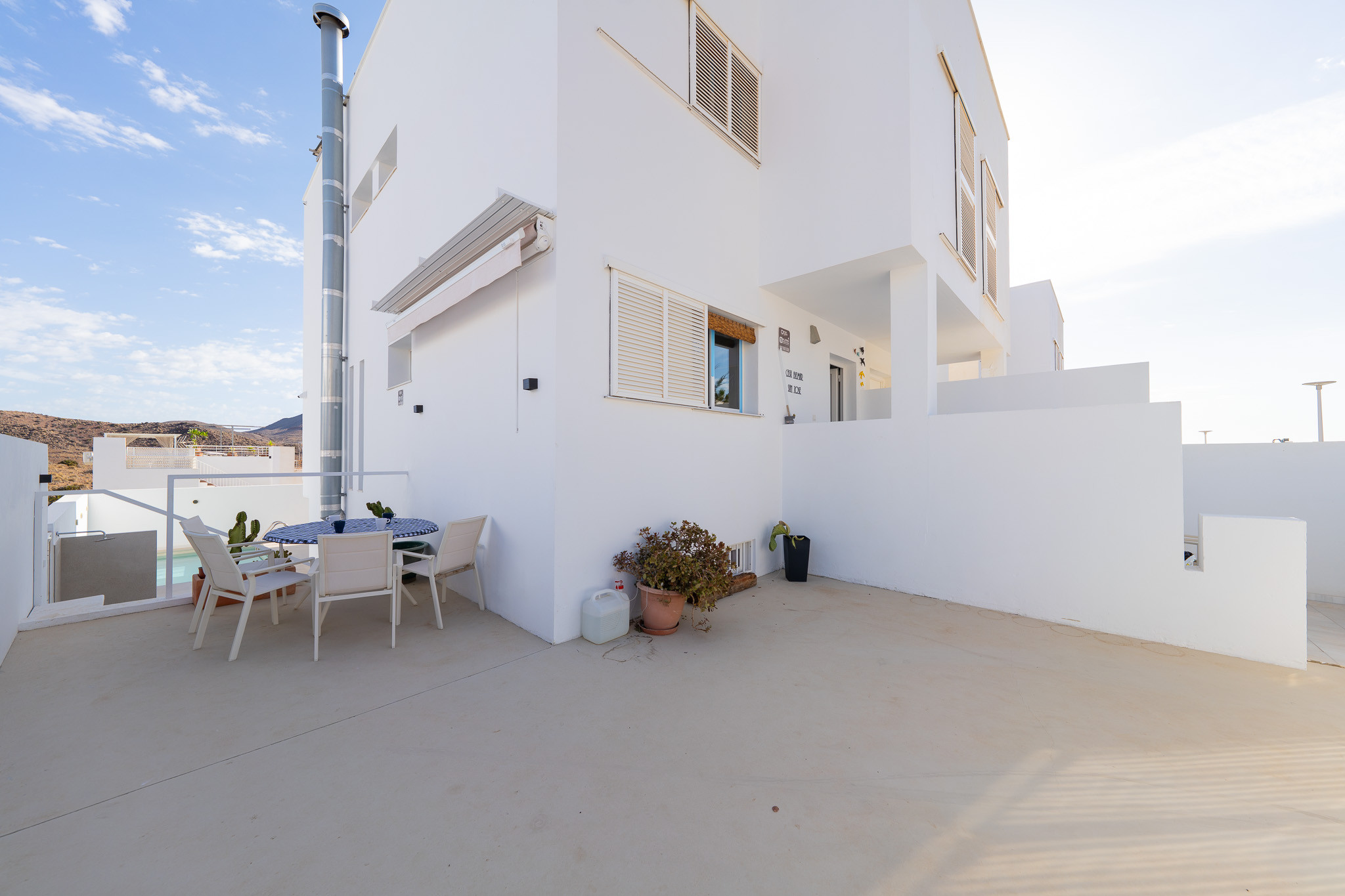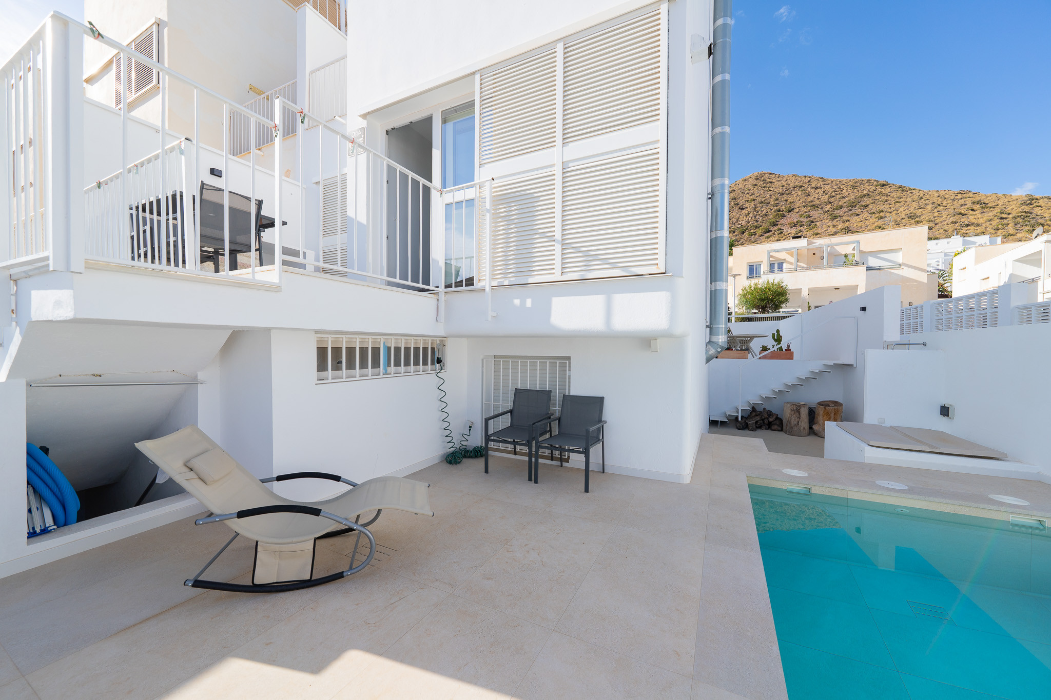 La casa en San Jose posee 5 dormitorio(s) y capacidad para 10 personas. Alojamiento de 160 m². Dispone de mobiliario jardín, 50 m² de terraza, lavadora, barbacoa, plancha, acceso internet (wifi), secador, calefacción bomba de calor, aire acondicionado, piscina privada, 2 Televisores. La cocina americana, de vitrocerámica, está equipada con nevera, microondas, horno, congelador, lavavajillas, vajilla/cubertería, cafetera, tostadora, hervidor de agua y exprimidor.