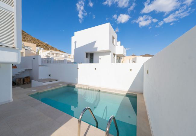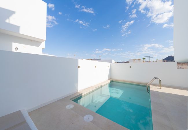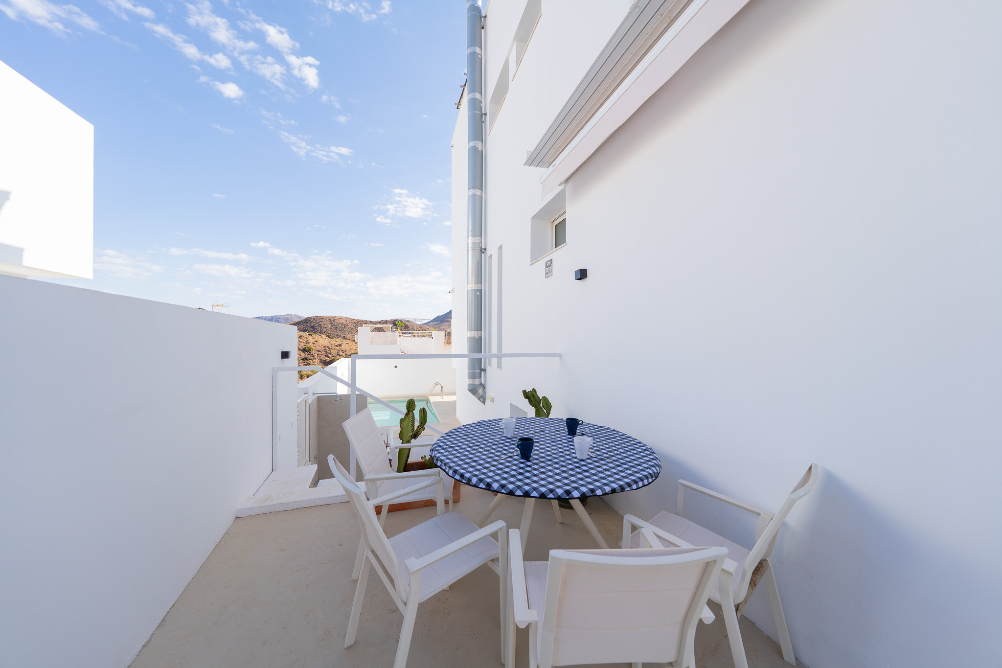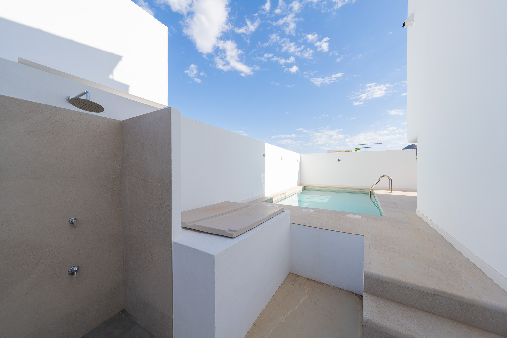 La casa en San Jose posee 5 dormitorio(s) y capacidad para 10 personas. Alojamiento de 160 m². Dispone de mobiliario jardín, 50 m² de terraza, lavadora, barbacoa, plancha, acceso internet (wifi), secador, calefacción bomba de calor, aire acondicionado, piscina privada, 2 Televisores. La cocina americana, de vitrocerámica, está equipada con nevera, microondas, horno, congelador, lavavajillas, vajilla/cubertería, cafetera, tostadora, hervidor de agua y exprimidor.