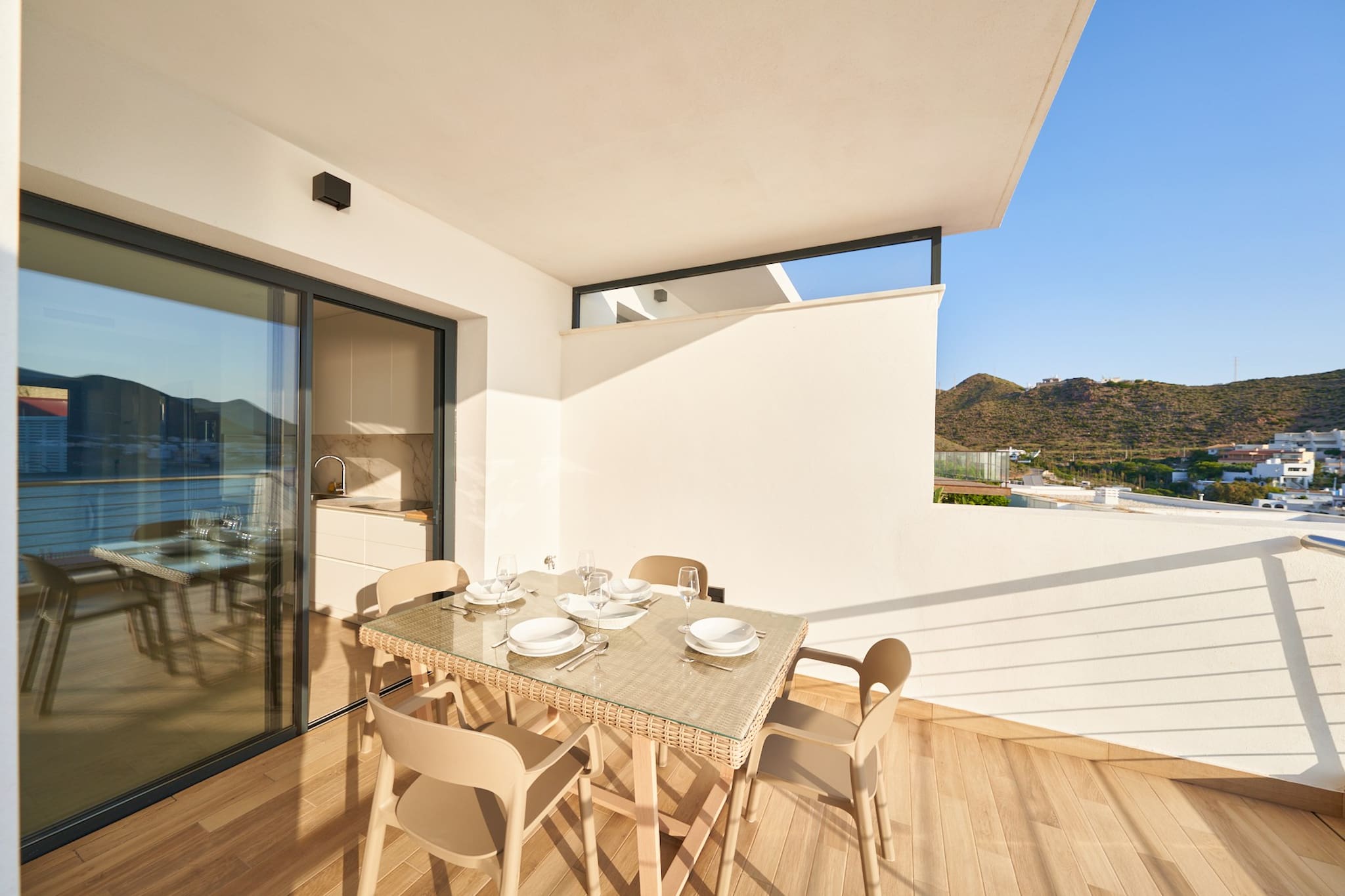 La casa en San José posee 3 dormitorio(s) y capacidad para 6 personas. Alojamiento de 90 m². Dispone de mobiliario jardín, 15 m² de terraza, lavadora, barbacoa, plancha, acceso internet (wifi), secador, aire acondicionado, Televisión.La cocina independiente, de vitrocerámica, está equipada con nevera, microondas, horno, congelador, lavavajillas, vajilla/cubertería, utensilios/cocina, cafetera y tostadora.