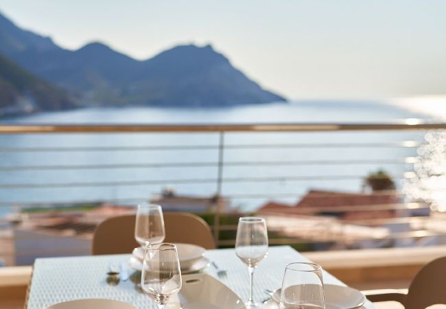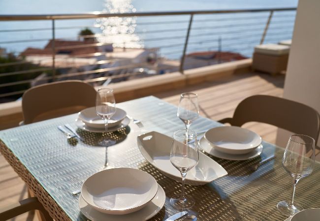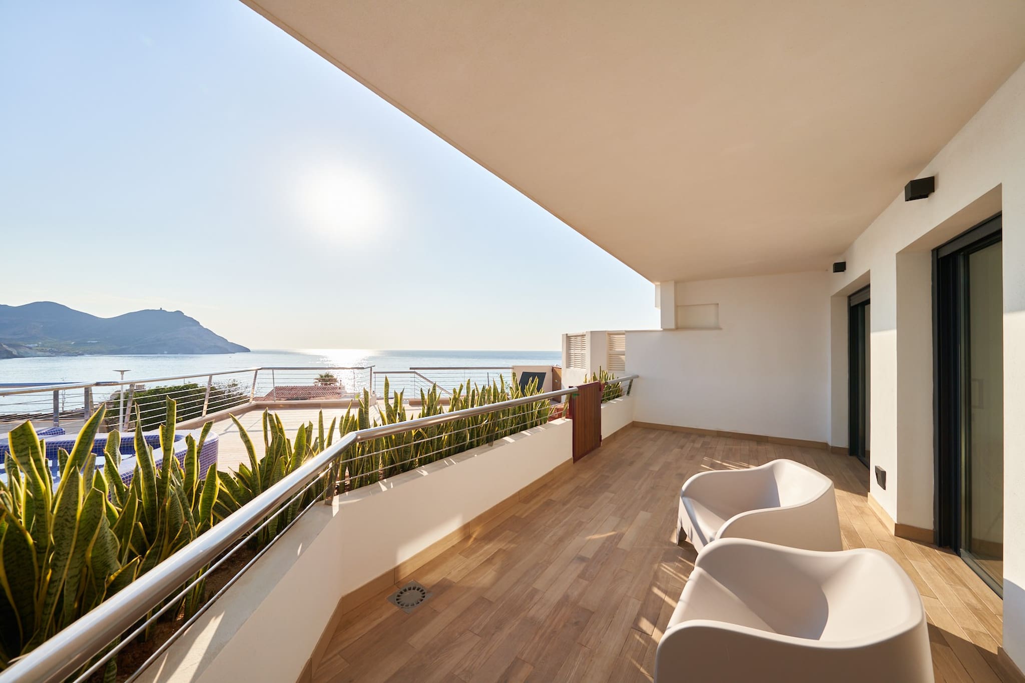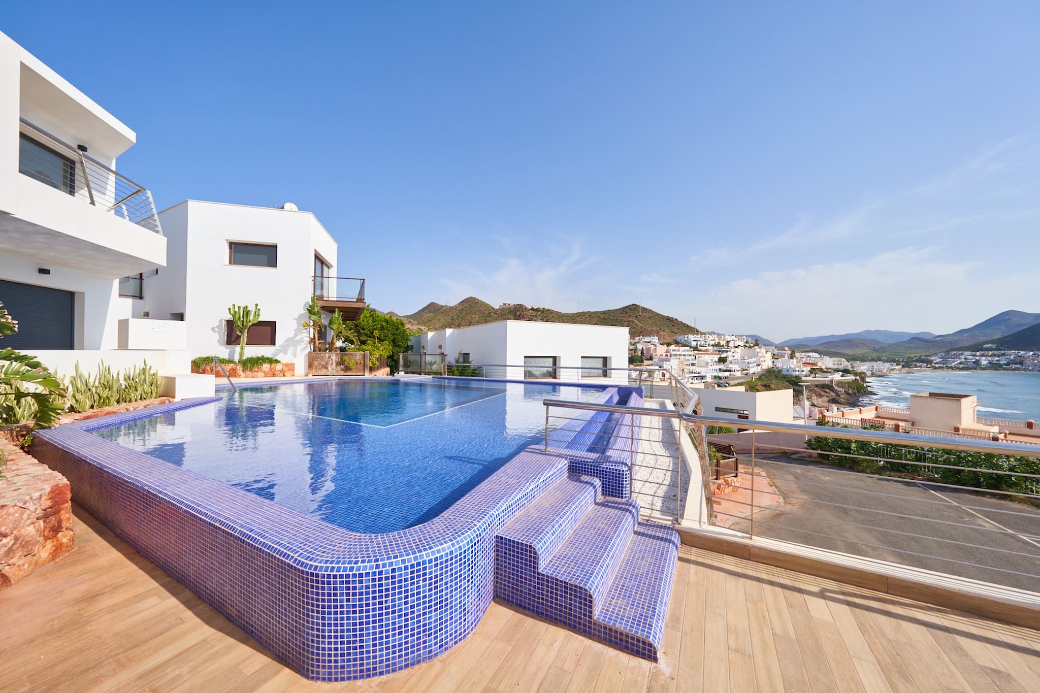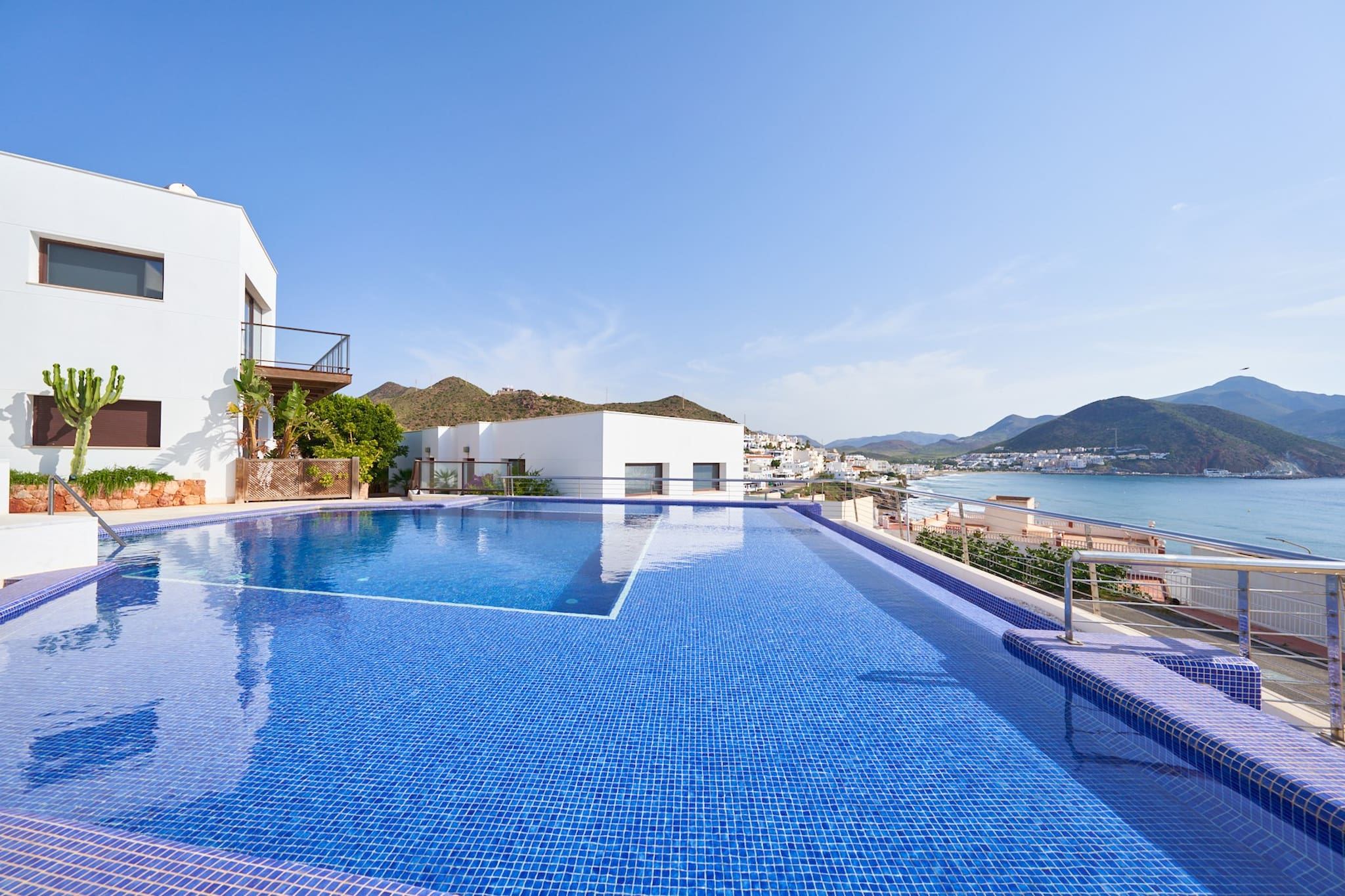 Magnifica vivienda con inmejorables vistas a toda la bahía de San José. Dispone de tres dormitorios con baños en Suite, un aseo en la planta principal, cocina totalmente equipada, terraza con muebles de exterior, garaje con capacidad para 3 coches y piscina comunitaria. Ideal para pasar unas fantásticas vacaciones en familia.