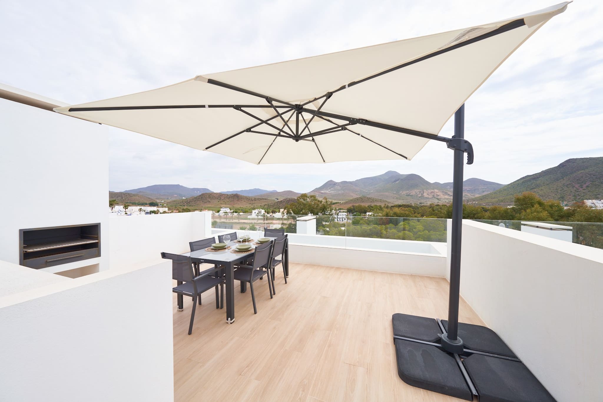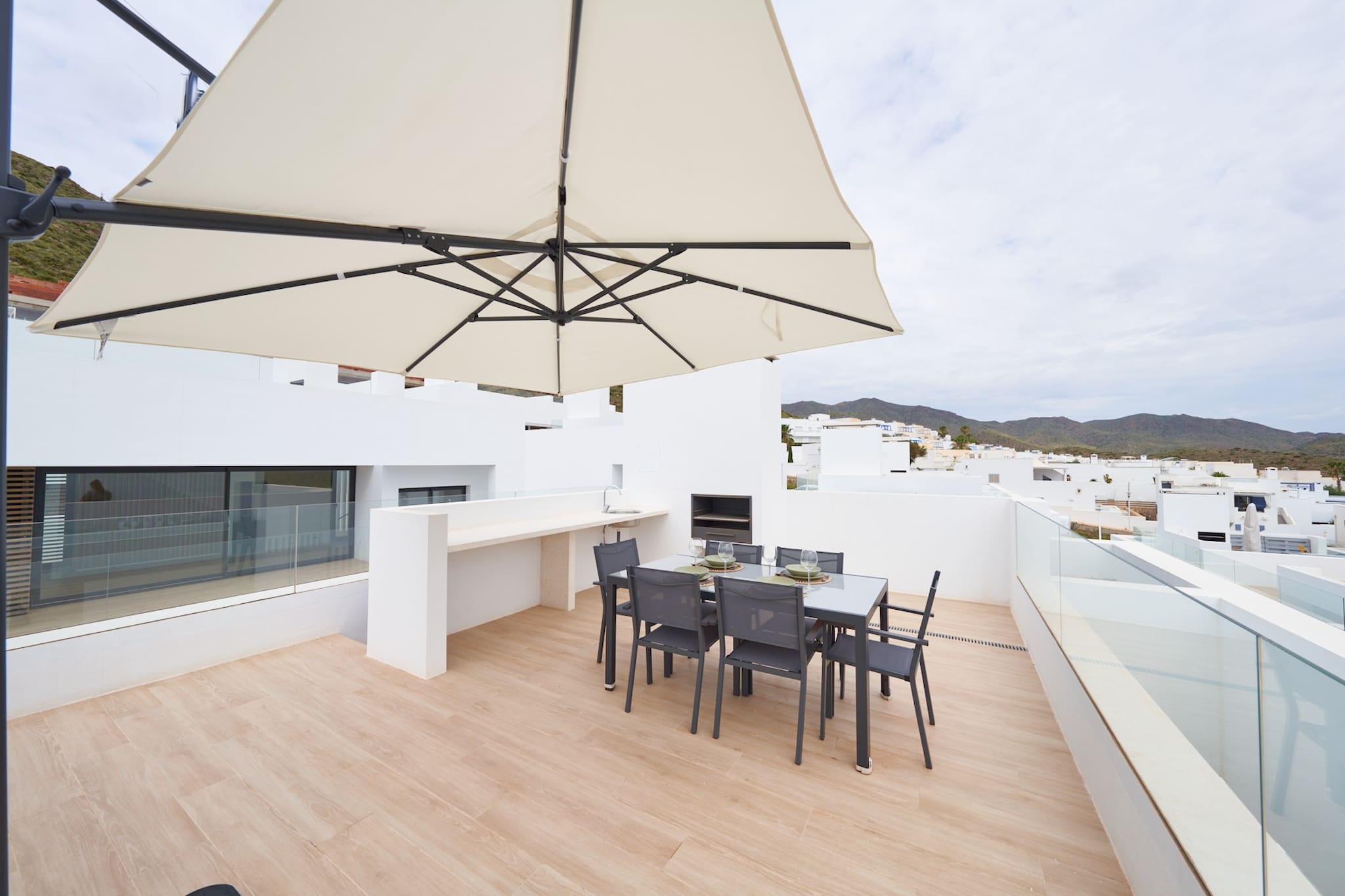 Amplia vivienda completamente equipada de 3 dormitorios, 2 baños, cocina, salón con aire acondicionado y terraza a pocos minutos de la Playa y el Puerto Deportivo de San José. Dispone de Wifi.