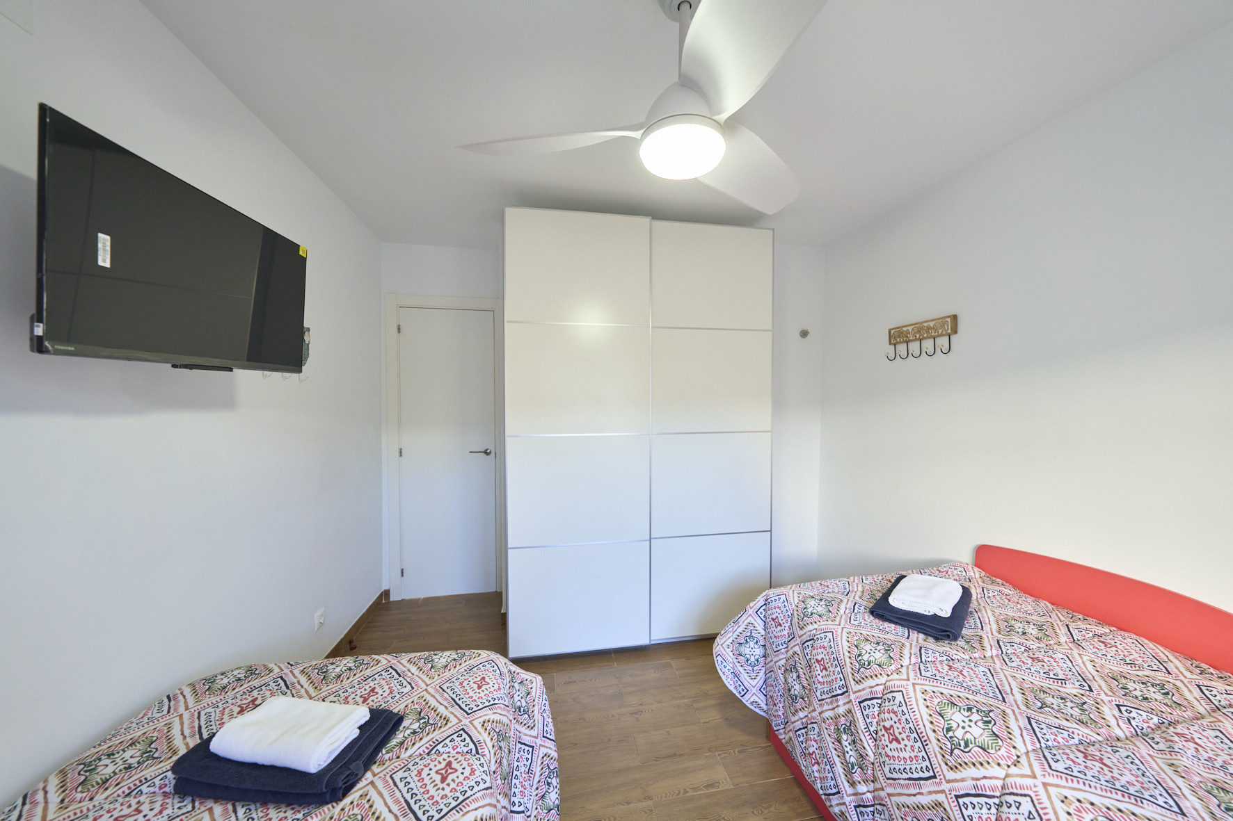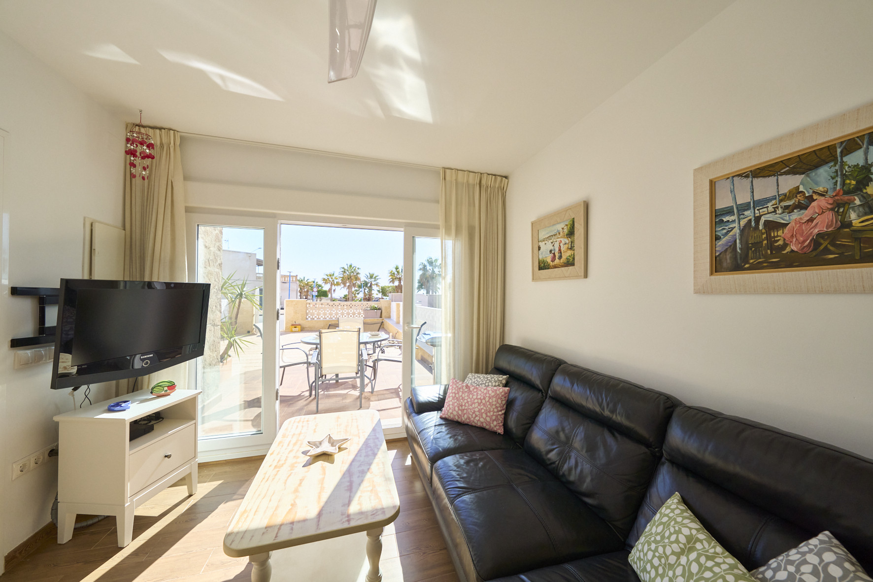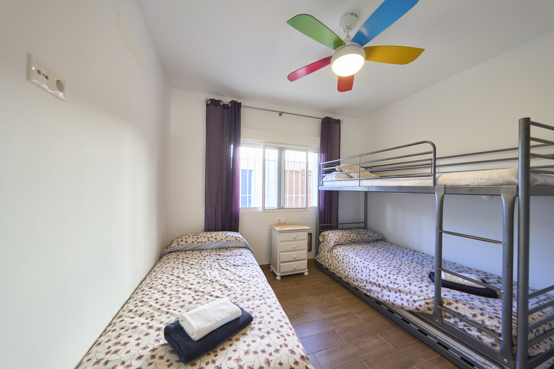 Dúplex situado en la calle Las Rosas 14, dispone de cuatro dormitorios, uno con una cama de 150 cm, dos con dos camas de 90 cm cada uno y un cuarto dormitorio con una cama de 90 cm, salón-comedor, cocina completamente equipada de menaje y pequeño electrodomésticos, terraza con vistas al mar, aire acondicionado en salón y dormitorios. WiFi Gratis. Dispone de sábanas y toallas de casa..