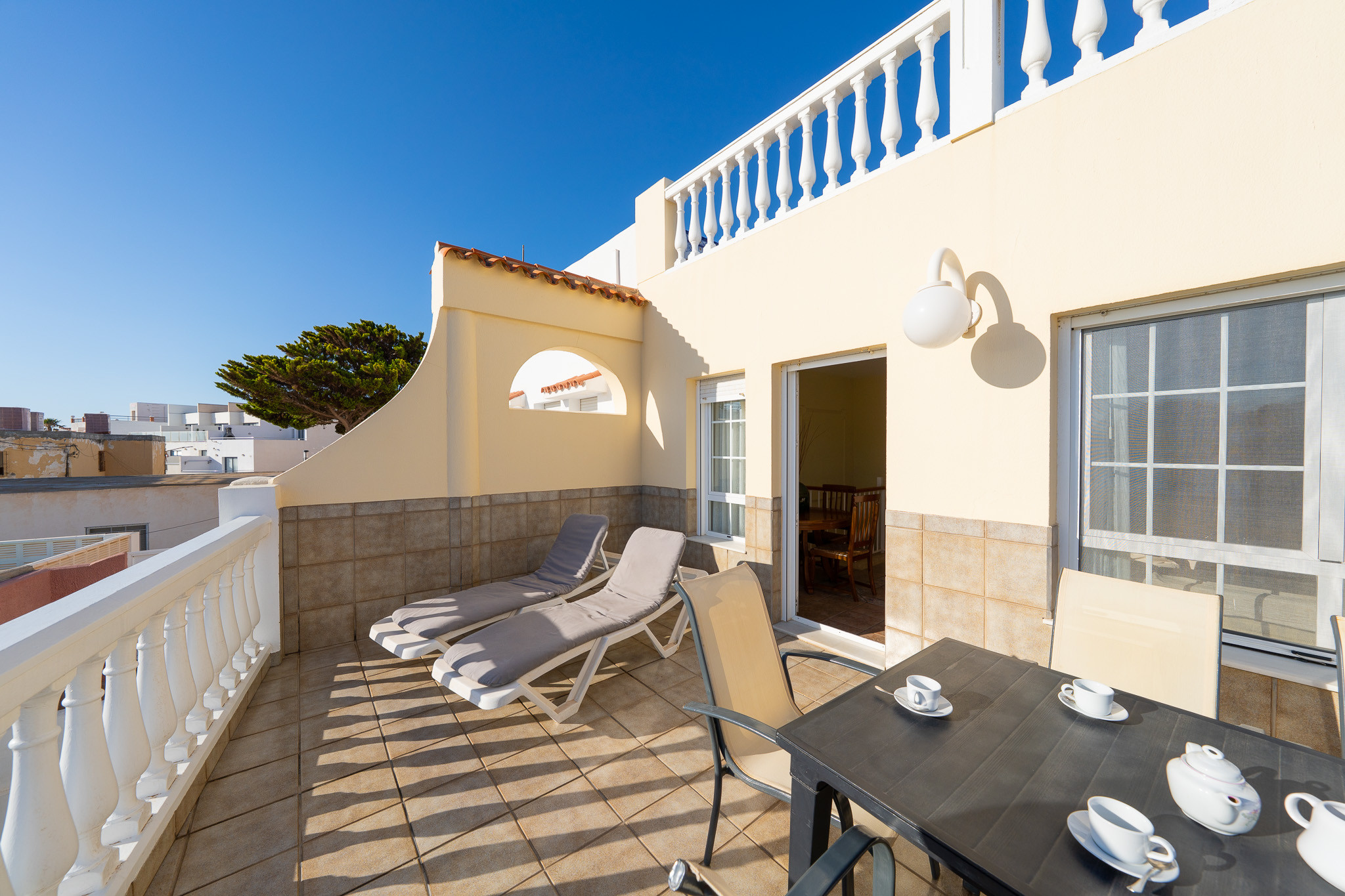 Dispone de dos dormitorios, un baño, salón-cocina y terraza con mesa y sillas.
