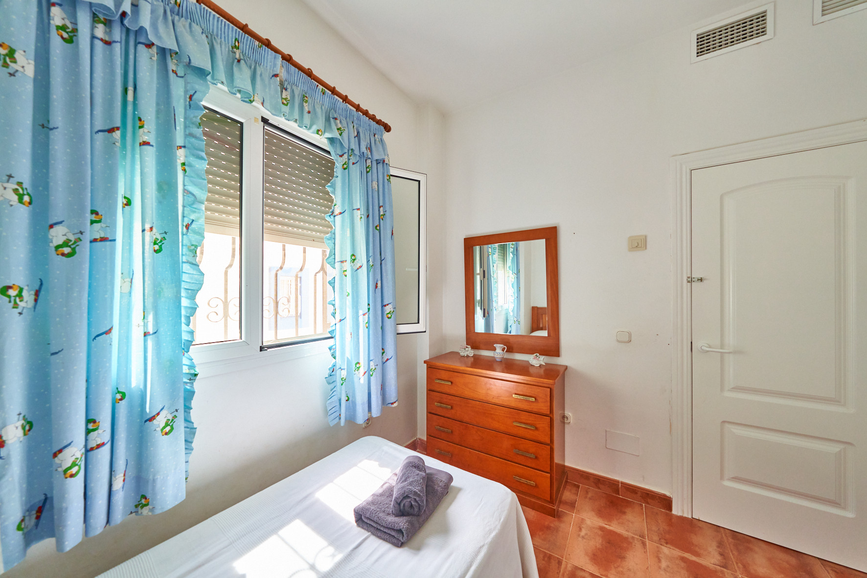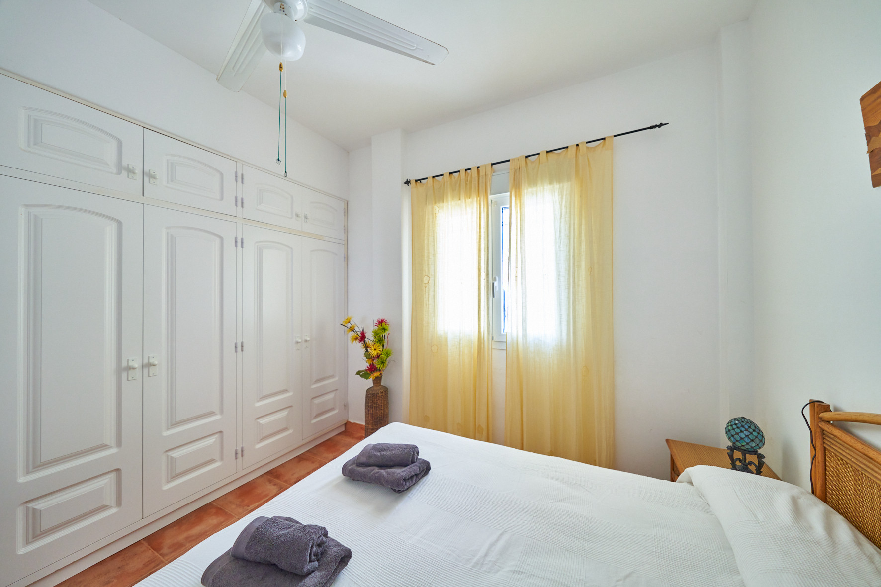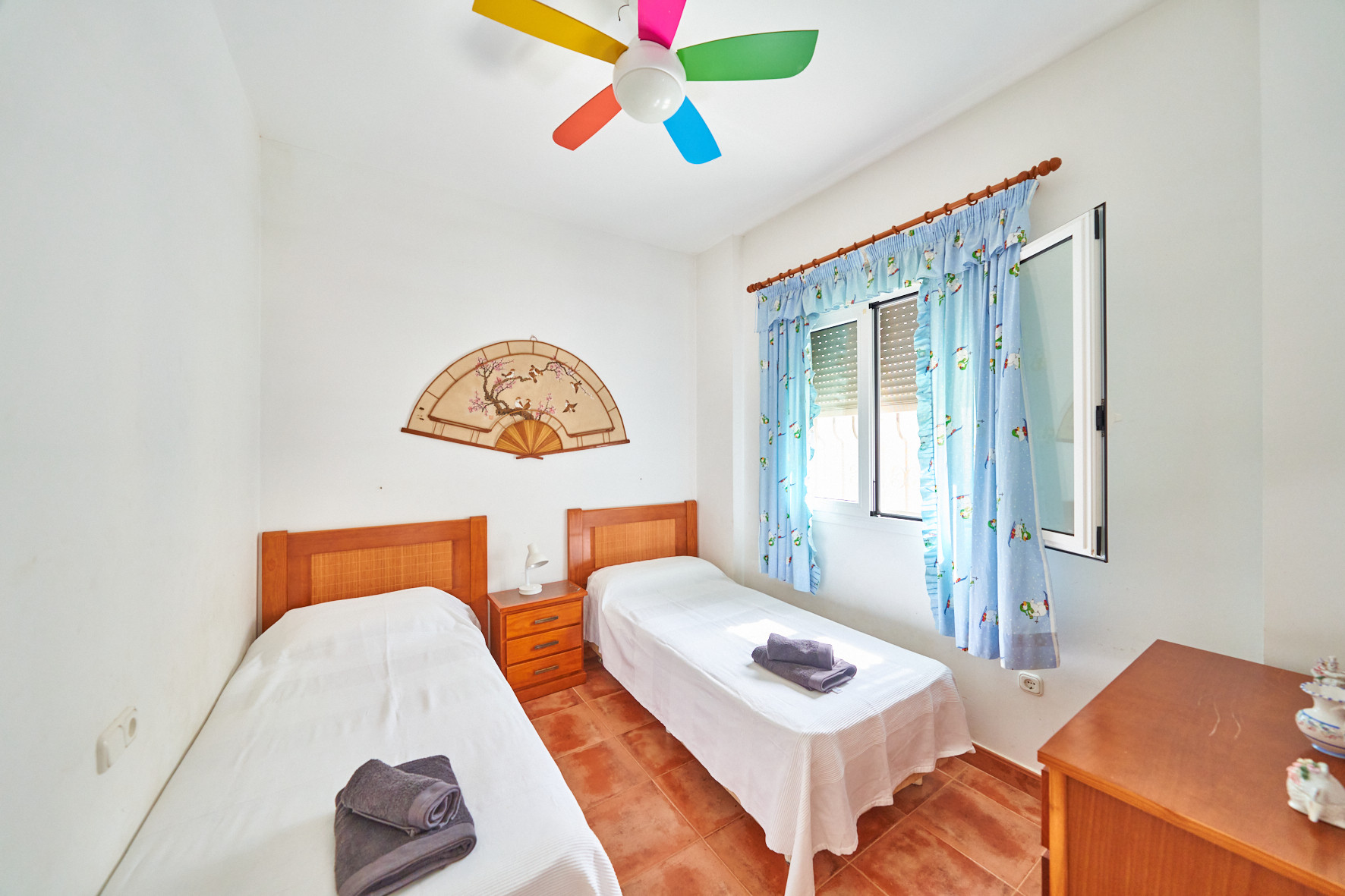 Dispone de cuatro dormitorios, dos de ellos con dos camas de 90 cm y dos dormitorio con una cama de 135 cm cada una, 2 baños, salón-comedor y cocina. Terraza amueblada para disfrutar de comidas al aire libre. Dispone de piscina comunitaria. A menos de 5 minutos de la playa y del Paseo Marítimo.