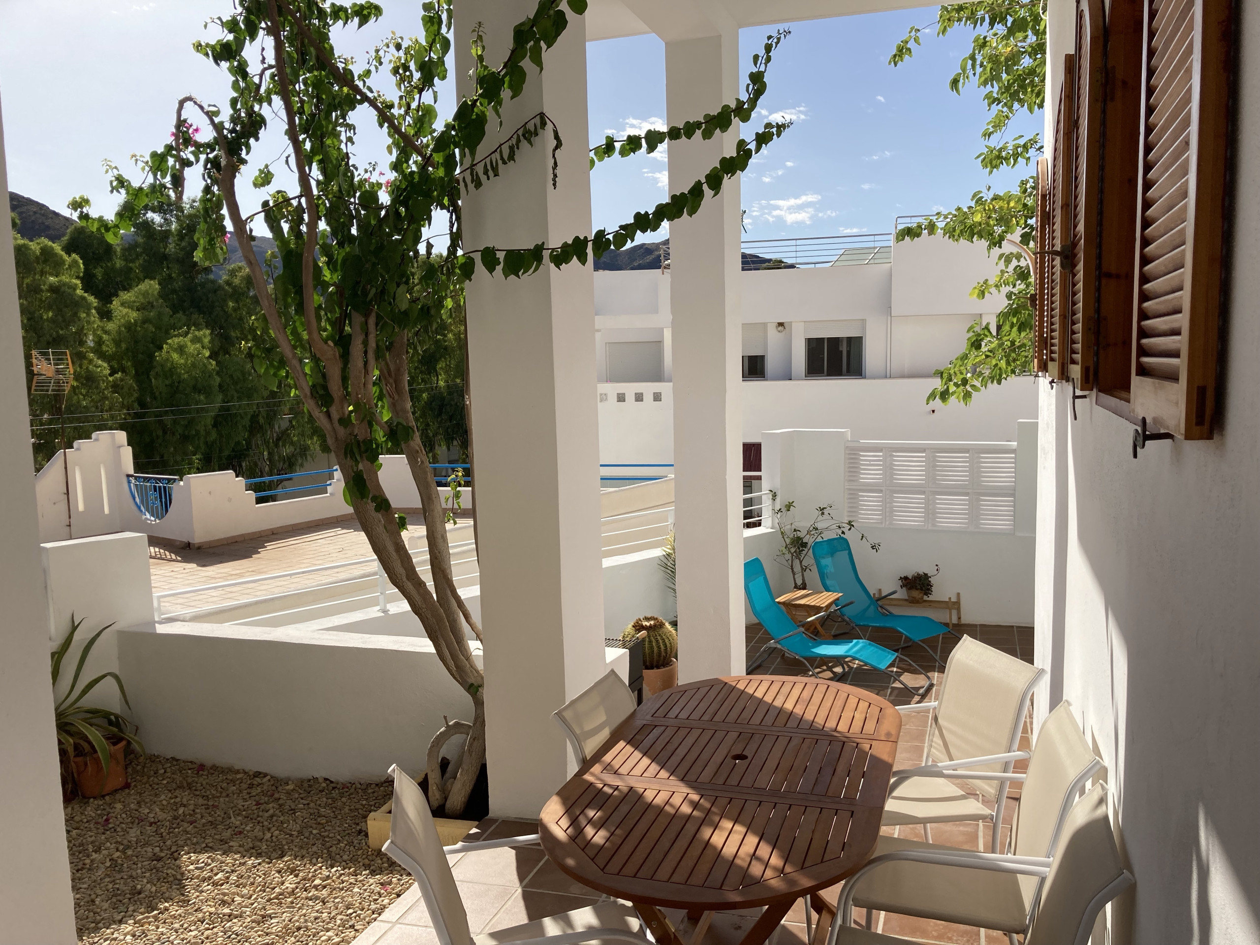 Amplia vivienda completamente equipada de 3 dormitorios, 2 baños, cocina, salón con aire acondicionado y terraza a pocos minutos de la Playa y el Puerto Deportivo de San José. Dispone de Wifi.