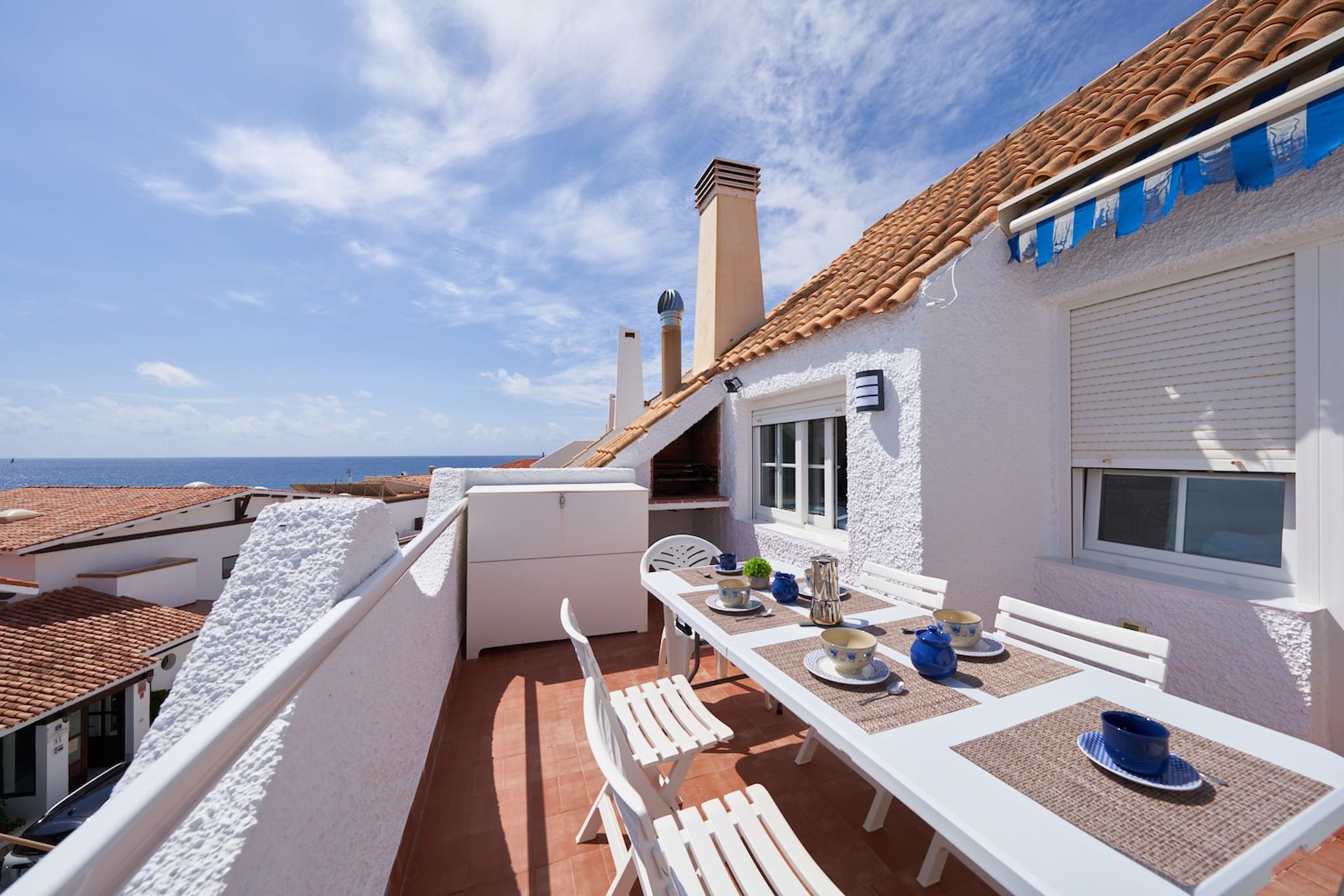 Preciosa vivienda con capacidad para 6 personas en San José. Dispone de 3 dormitorios, dos baños, dos terrazas con vistas al mar, barbacoa y muebles de exterior. Cocina totalmente equipada, ideal para pasar unas agradables vacaciones en familia. Aire acondicionado en salón y en planta baja. A 50 metros de la playa.