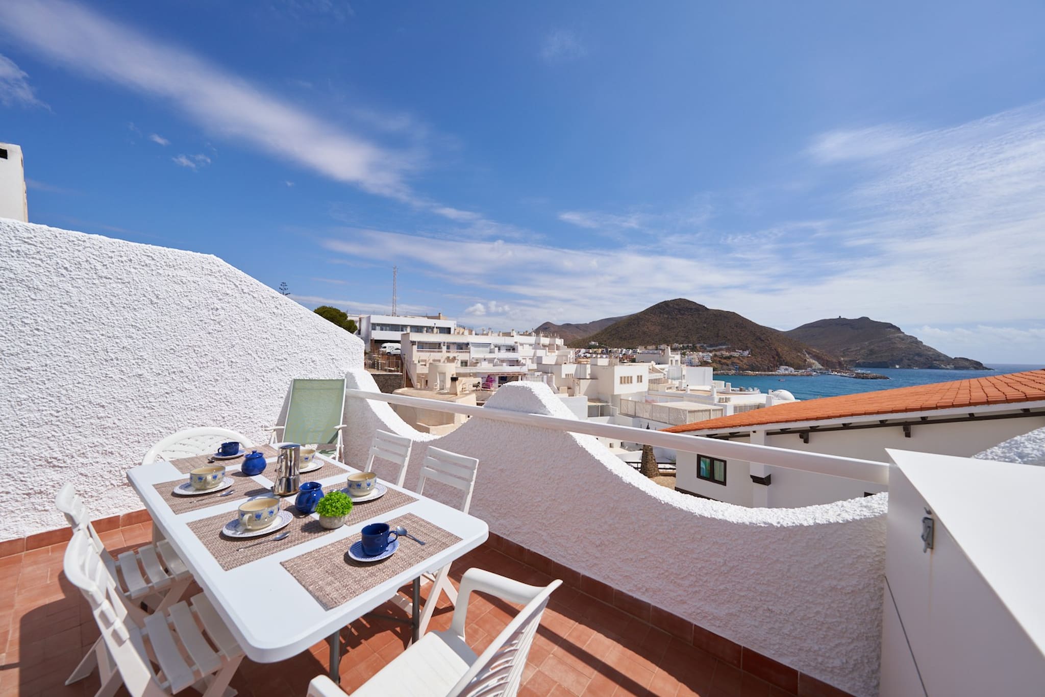 Amplia vivienda completamente equipada de 3 dormitorios, 2 baños, cocina, salón con aire acondicionado y terraza a pocos minutos de la Playa y el Puerto Deportivo de San José. Dispone de Wifi.