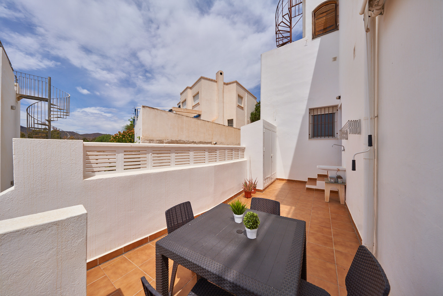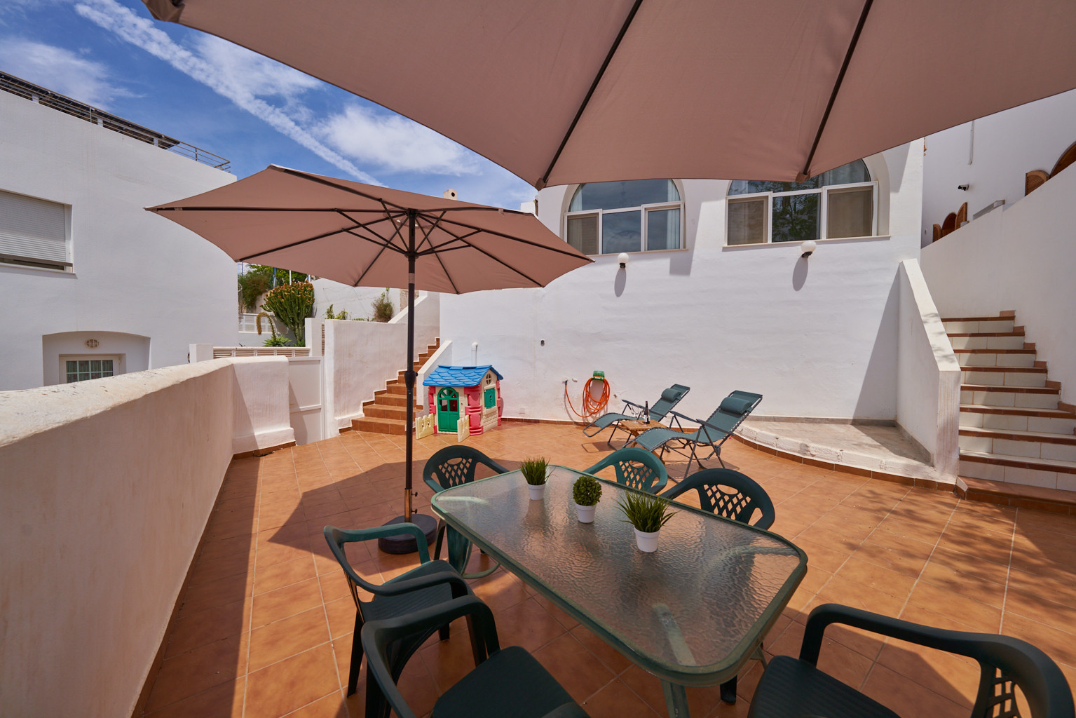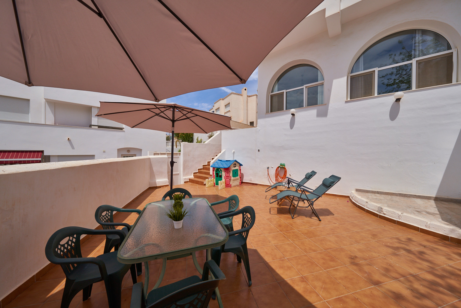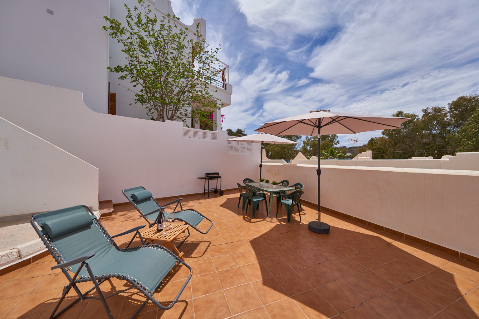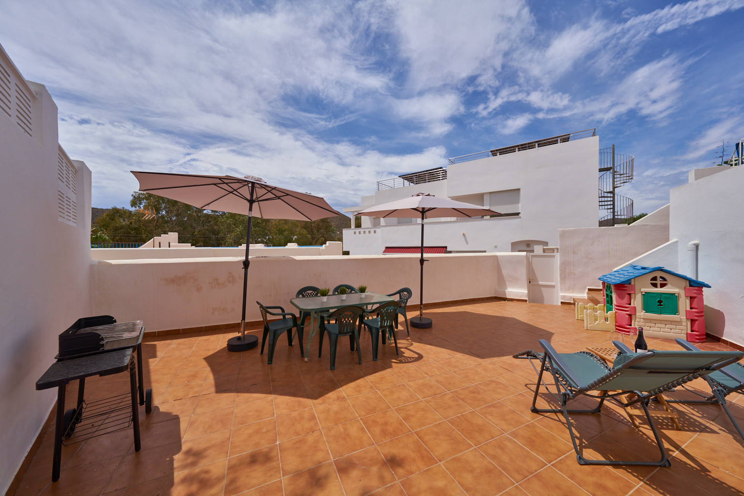 Dispone de 3 dormitorios y 2 baños. Ideal para familias que quieran conocer el Parque Natural Marítimo- Terrestre de Cabo de Gata- Níjar.Dispone de una zona con jardín, todo con sombra, mobiliario, ducha exterior y barbacoa además de una ducha exterior ideal para los días calurosos de verano. Tiene Aire acondicionado