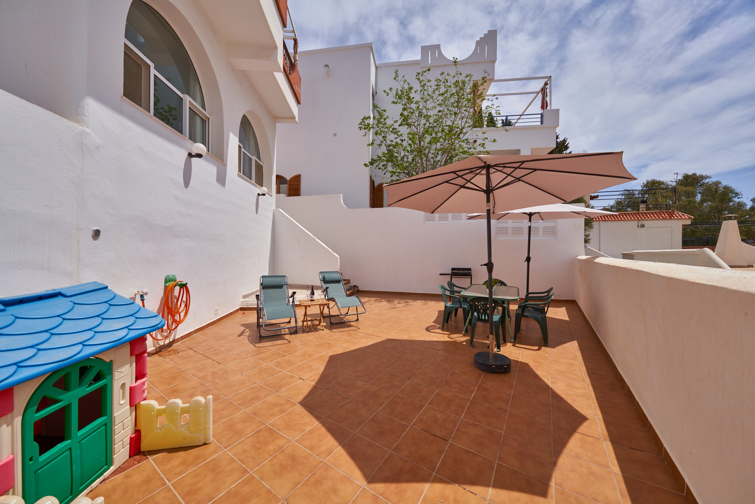 La casa en San José posee 3 dormitorio(s) y capacidad para 6 personas. Alojamiento de 90 m². Dispone de mobiliario jardín, 15 m² de terraza, lavadora, barbacoa, plancha, acceso internet (wifi), secador, aire acondicionado, Televisión.La cocina independiente, de vitrocerámica, está equipada con nevera, microondas, horno, congelador, lavavajillas, vajilla/cubertería, utensilios/cocina, cafetera y tostadora.