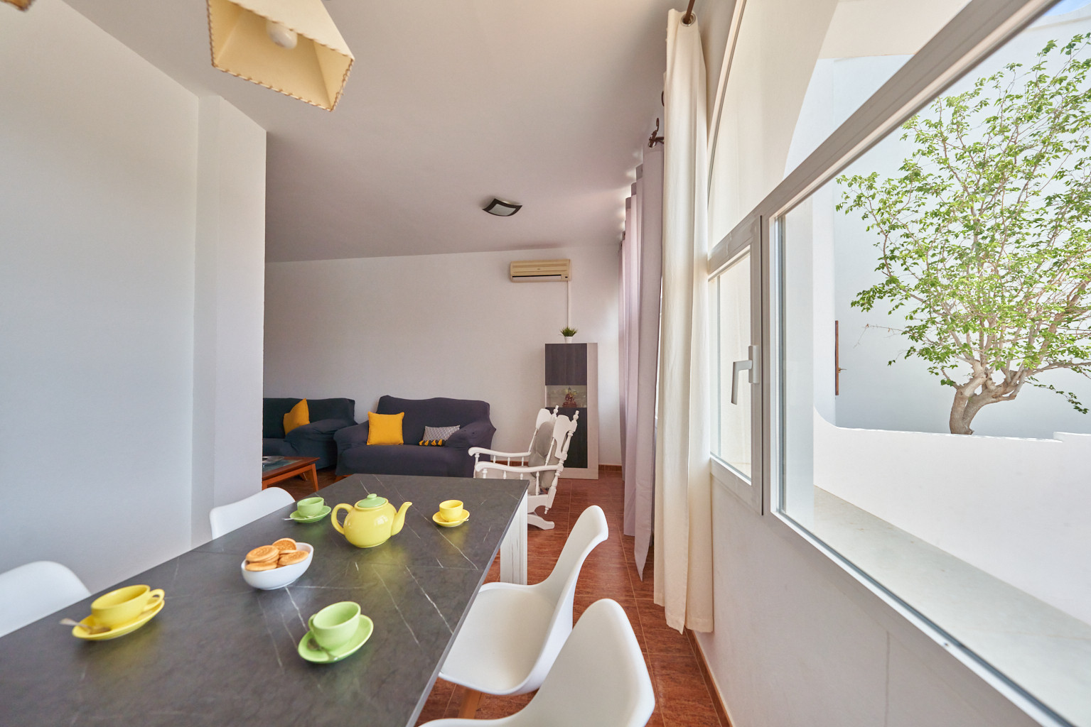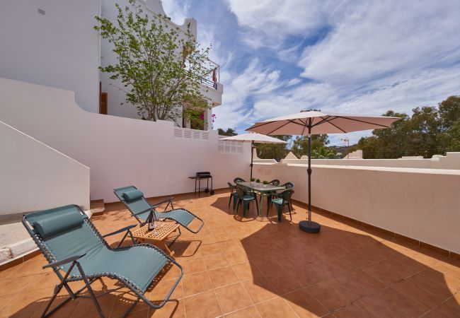 Amplia vivienda completamente equipada de 3 dormitorios, 2 baños, cocina, salón con aire acondicionado y terraza a pocos minutos de la Playa y el Puerto Deportivo de San José. Dispone de Wifi.