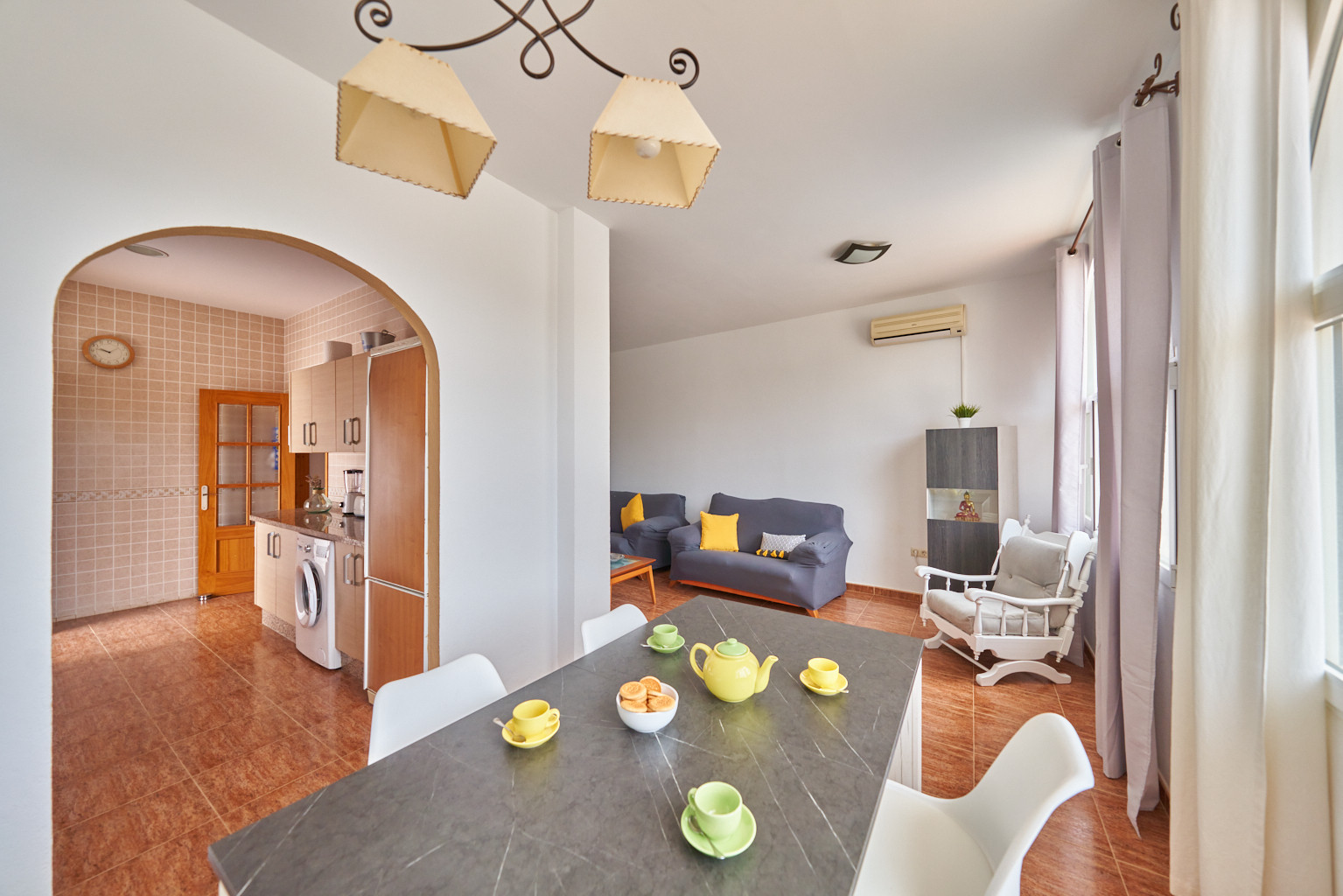 La casa en San José posee 3 dormitorio(s) y capacidad para 6 personas. Alojamiento de 90 m². Dispone de lavadora, plancha, secador.La cocina independiente, está equipada con nevera, horno, congelador, lavavajillas, utensilios/cocina, cafetera y tostadora.