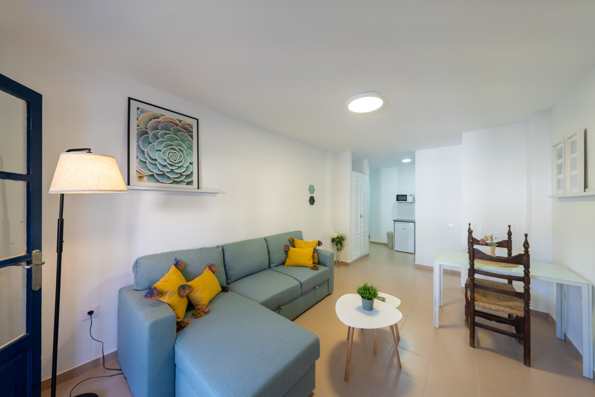 El estudio en San Jose posee capacidad para 2 personas. Alojamiento de 30 m². Dispone de jardín, mobiliario jardín, terraza, lavadora, plancha, secador, aire acondicionado, piscina comunitaria, 1 Televisor. La cocina americana, de vitrocerámica, está equipada con nevera, microondas, vajilla/cubertería, utensilios/cocina, cafetera, tostadora y hervidor de agua.