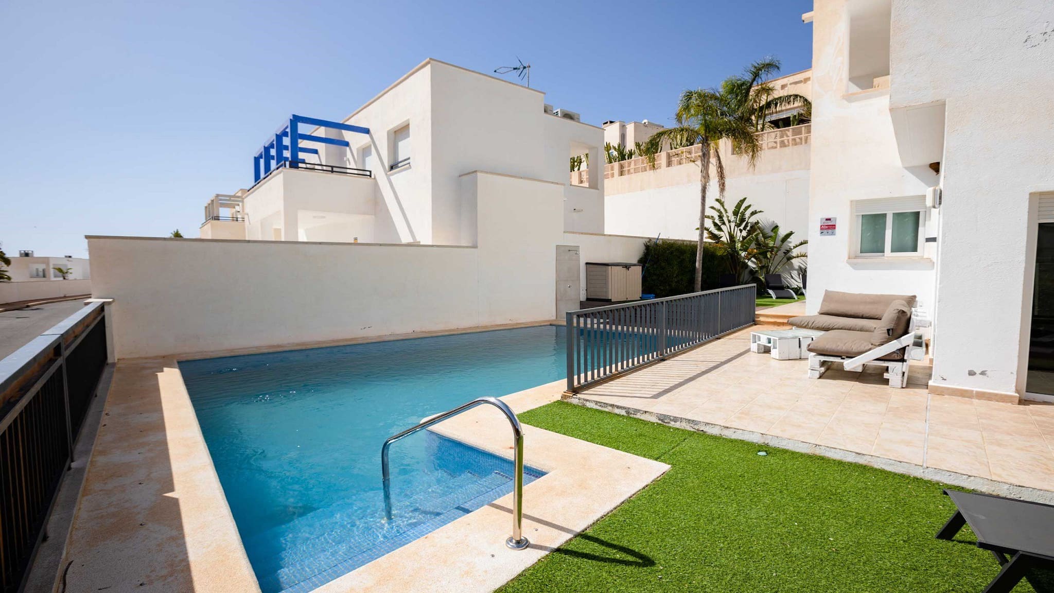 Estupendo chalet en alquiler para 10 personas, en zona tranquila, con piscina privada, ideal para unas tranquilas vacaciones. Chalet de 5 dormitorios, 3 baños y 1 aseo, con vistas a la Bahía de San José.