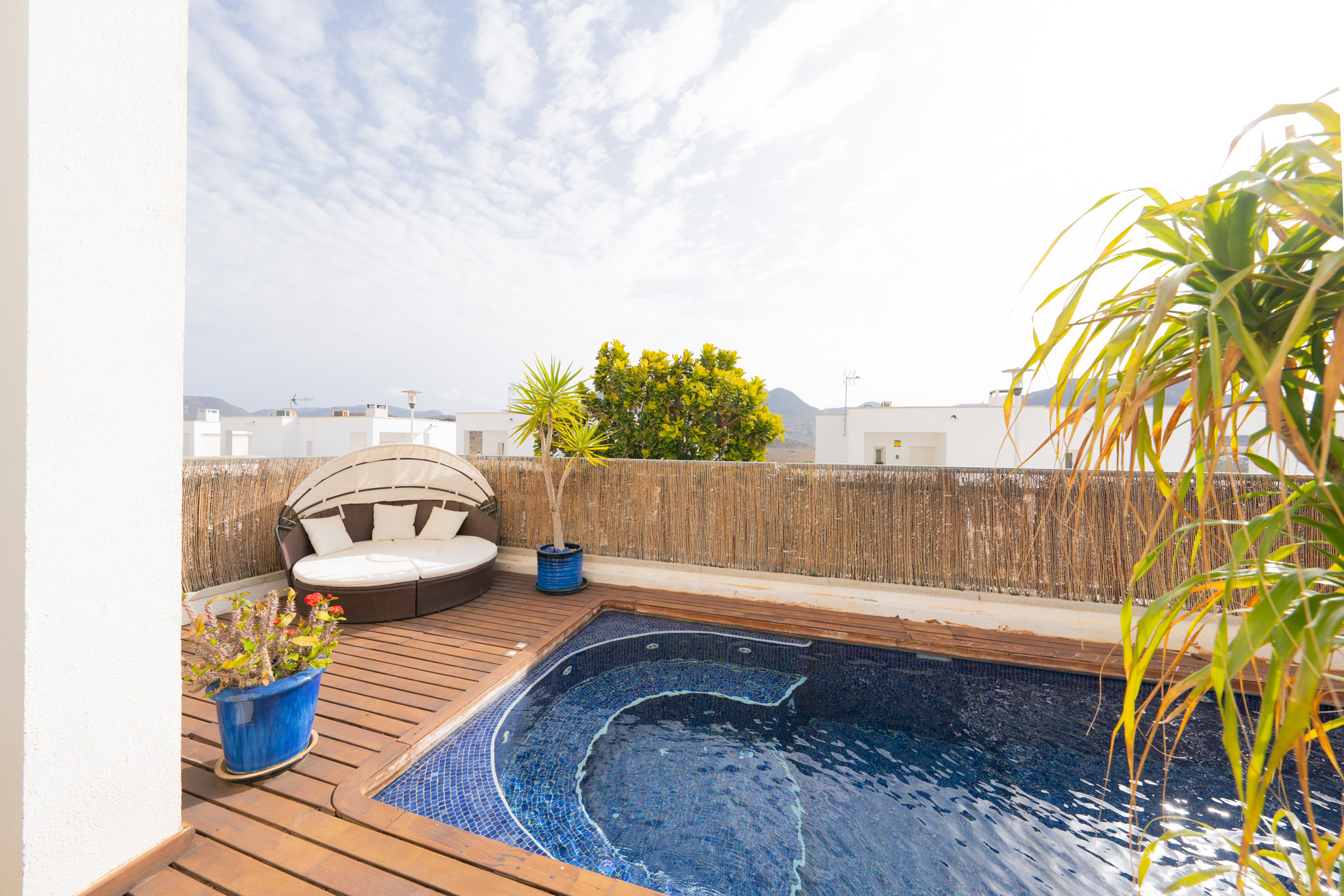 Espectacular Villa con piscina privada, totalmente equipada y con capacidad para 8 personas ubicada en una zona tranquila de San José en pleno Parque Natural de Cabo de Gata, a 10 minutos del centro del pueblo y de la playa del puerto.