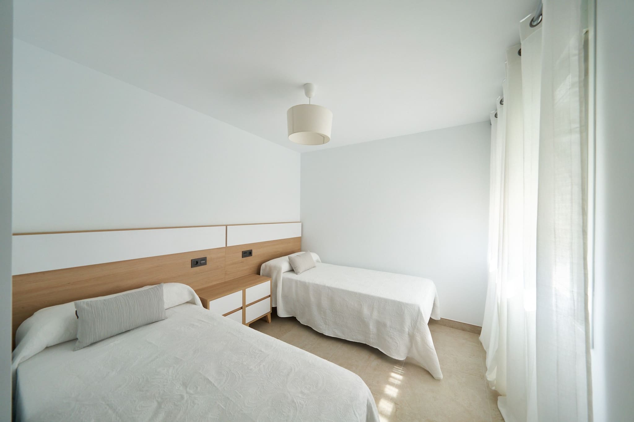 Appartement à Níjar qui possède 2 chambre(s) et Capacité pour 4 personnes. Logement de 60 m². Elle dispose de 10 m² de terrasse, lave-linge, fer à repasser, accès internet (wifi), sèche-cheveux, chauffage pompe à chaleur, climatisation dans tout le logement, 1 Télévision.La cuisine américaine, à vitrocéramique, est équipée avec réfrigérateur, micro-ondes, congélateur, vaisselle/couverts, ustensiles/cuisine, cafetière et bouilloire.