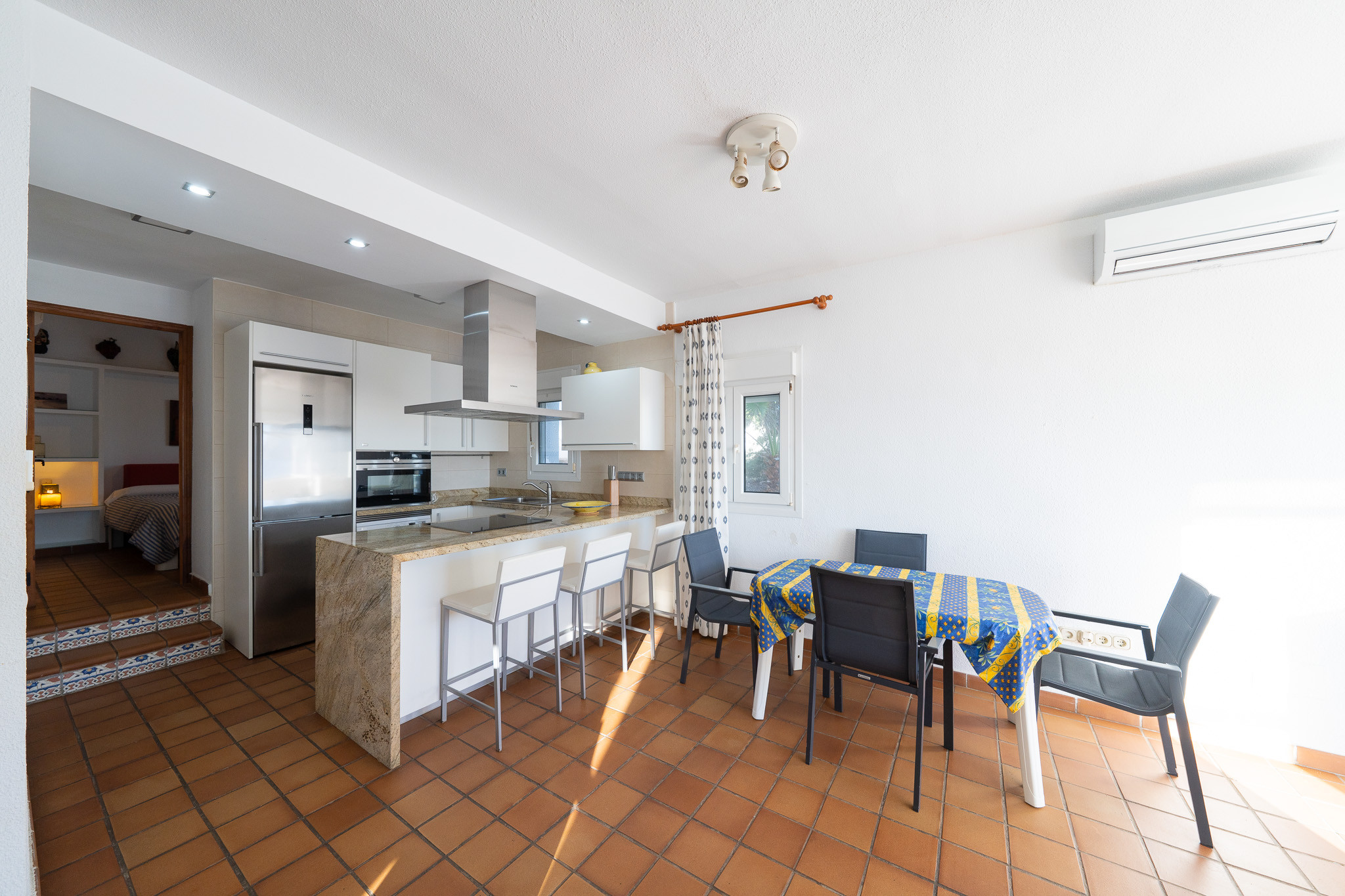Appartement à Níjar qui possède 2 chambre(s) et Capacité pour 5 personnes. Logement de 70 m². Elle dispose de 6 m² de terrasse, lave-linge, fer à repasser, accès internet (wifi), sèche-cheveux, chauffage pompe à chaleur, climatisation, 1 Télévision. La cuisine indépendante, à vitrocéramique, est équipée avec réfrigérateur, micro-ondes, congélateur, vaisselle/couverts, ustensiles/cuisine, cafetière et bouilloire.