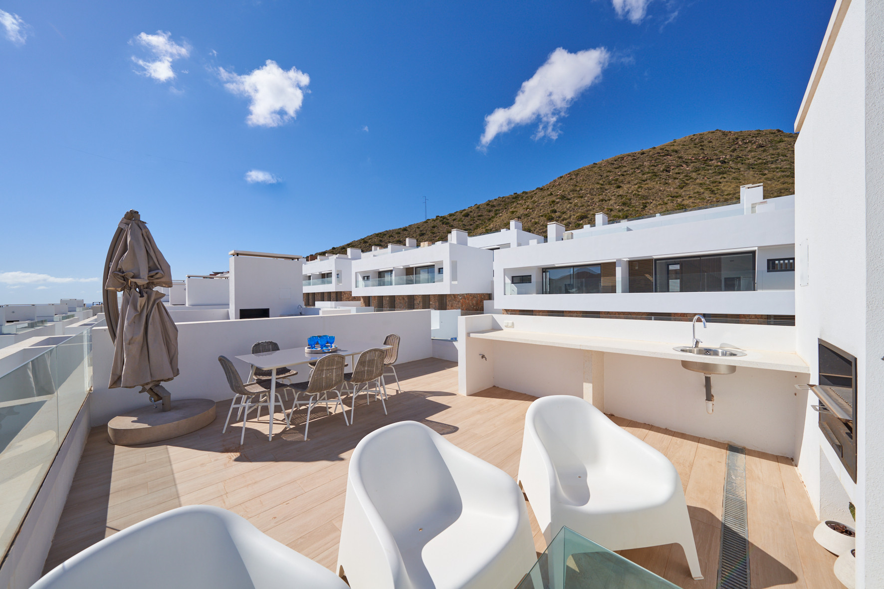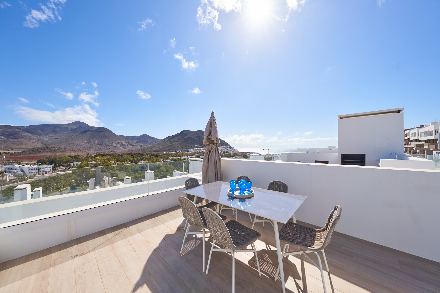 Appartement à San Jose qui possède 3 chambre(s) et Capacité pour 6 personnes. Logement de 120 m². Elle dispose de jardin, mobilier de jardin, clôture, 15 m² de terrasse, lave-linge, barbecue, cheminée, fer à repasser, sèche-cheveux, balcon, chauffage pompe à chaleur, climatisation, piscine collective, parking couvert même bâtiment, 1 Télévision. La cuisine américaine, à vitrocéramique, est équipée avec réfrigérateur, micro-ondes, four, congélateur, lave-vaisselle, vaisselle/couverts, ustensiles/cuisine, cafetière, grille pain et bouilloire.