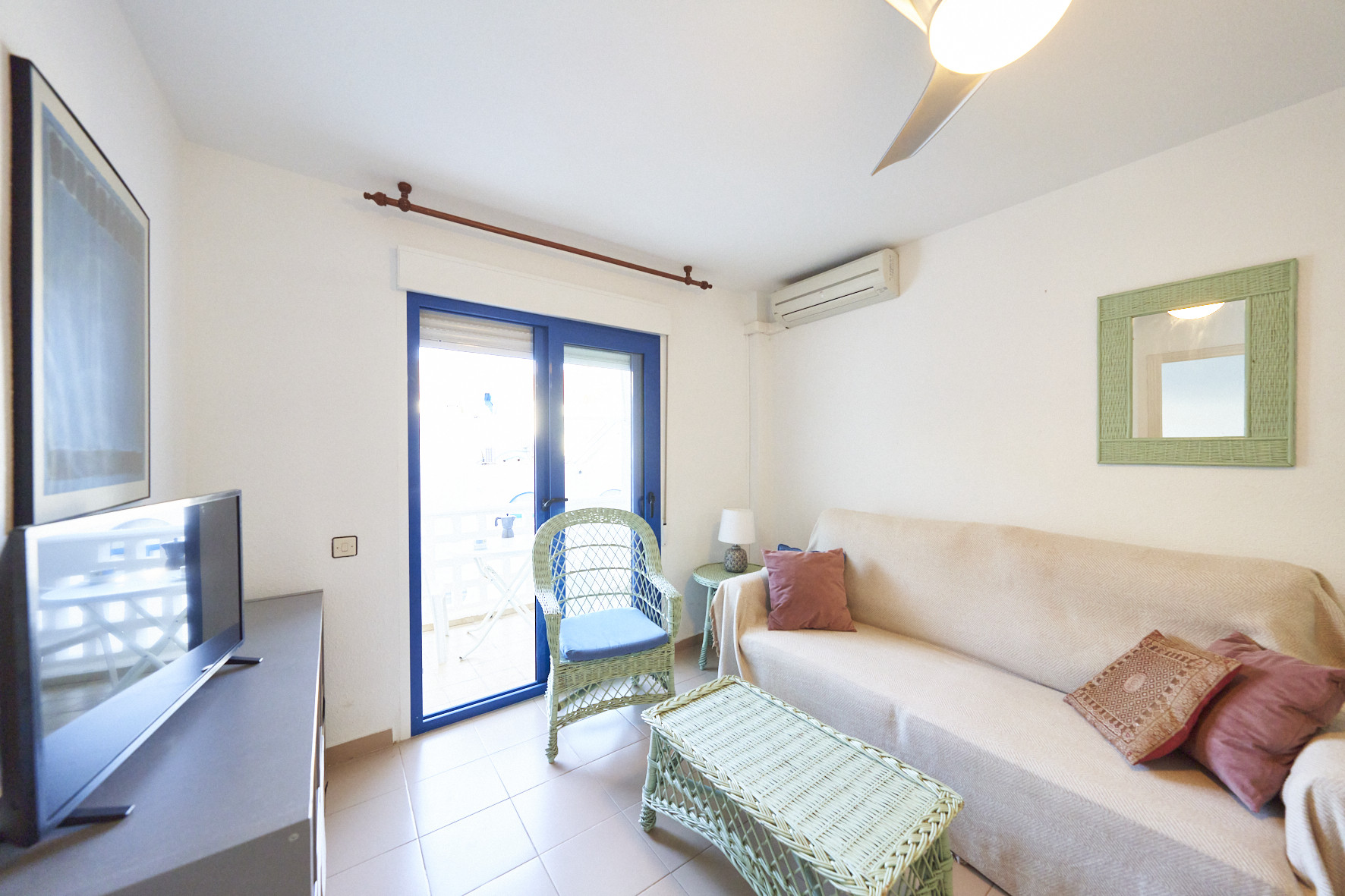Appartement à San Jose qui possède 1 chambre(s) et Capacité pour 3 personnes. Logement de 40 m². Elle dispose de jardin, mobilier de jardin, 5 m² de terrasse, lave-linge, fer à repasser, sèche-cheveux, balcon, chauffage pompe à chaleur, climatisation dans le salon, piscine collective, TV.La cuisine américaine, à vitrocéramique, est équipée avec réfrigérateur, micro-ondes, congélateur, vaisselle/couverts, ustensiles/cuisine, cafetière et grille pain.