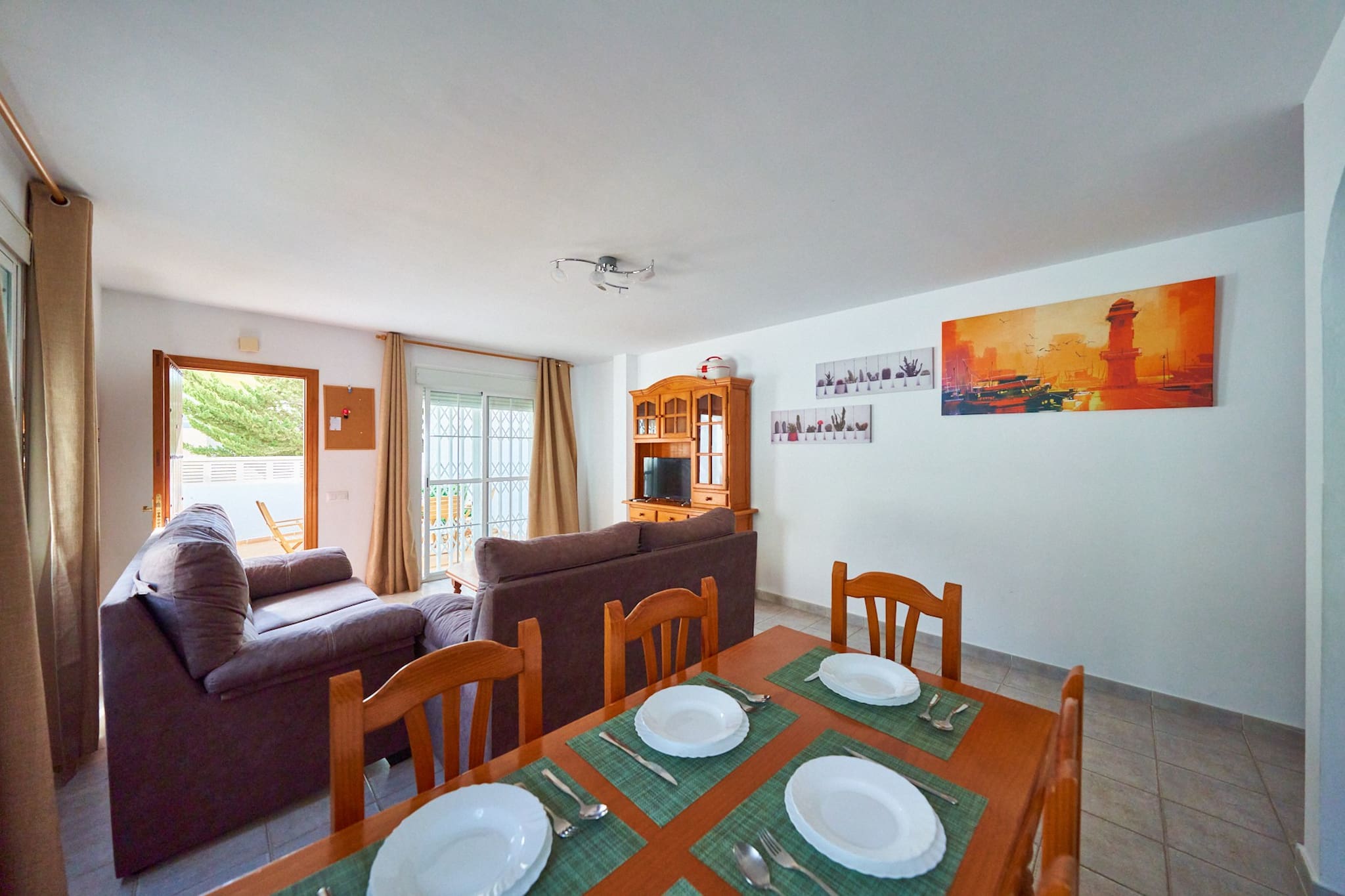 Appartement à San Jose qui possède 3 chambre(s) et Capacité pour 6 personnes. Logement de 100 m². Elle dispose de jardin, mobilier de jardin, clôture, 10 m² de terrasse, lave-linge, fer à repasser, chauffage pompe à chaleur, climatisation dans tout le logement, piscine collective, 1 Télévision. La cuisine indépendante, à vitrocéramique, est équipée avec réfrigérateur, micro-ondes, congélateur, vaisselle/couverts et cafetière.