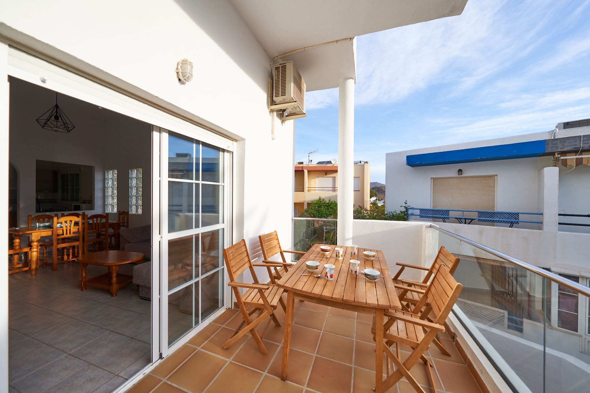 Appartement à San Jose qui possède 2 chambre(s) et Capacité pour 4 personnes. Logement de 65 m². Elle dispose de mobilier de jardin, 9 m² de terrasse, lave-linge, fer à repasser, sèche-cheveux, climatisation dans le salon et certaines chambres, piscine collective, 1 Télévision.La cuisine indépendante, à vitrocéramique, est équipée avec réfrigérateur, micro-ondes, congélateur, vaisselle/couverts, ustensiles/cuisine, cafetière et grille pain.