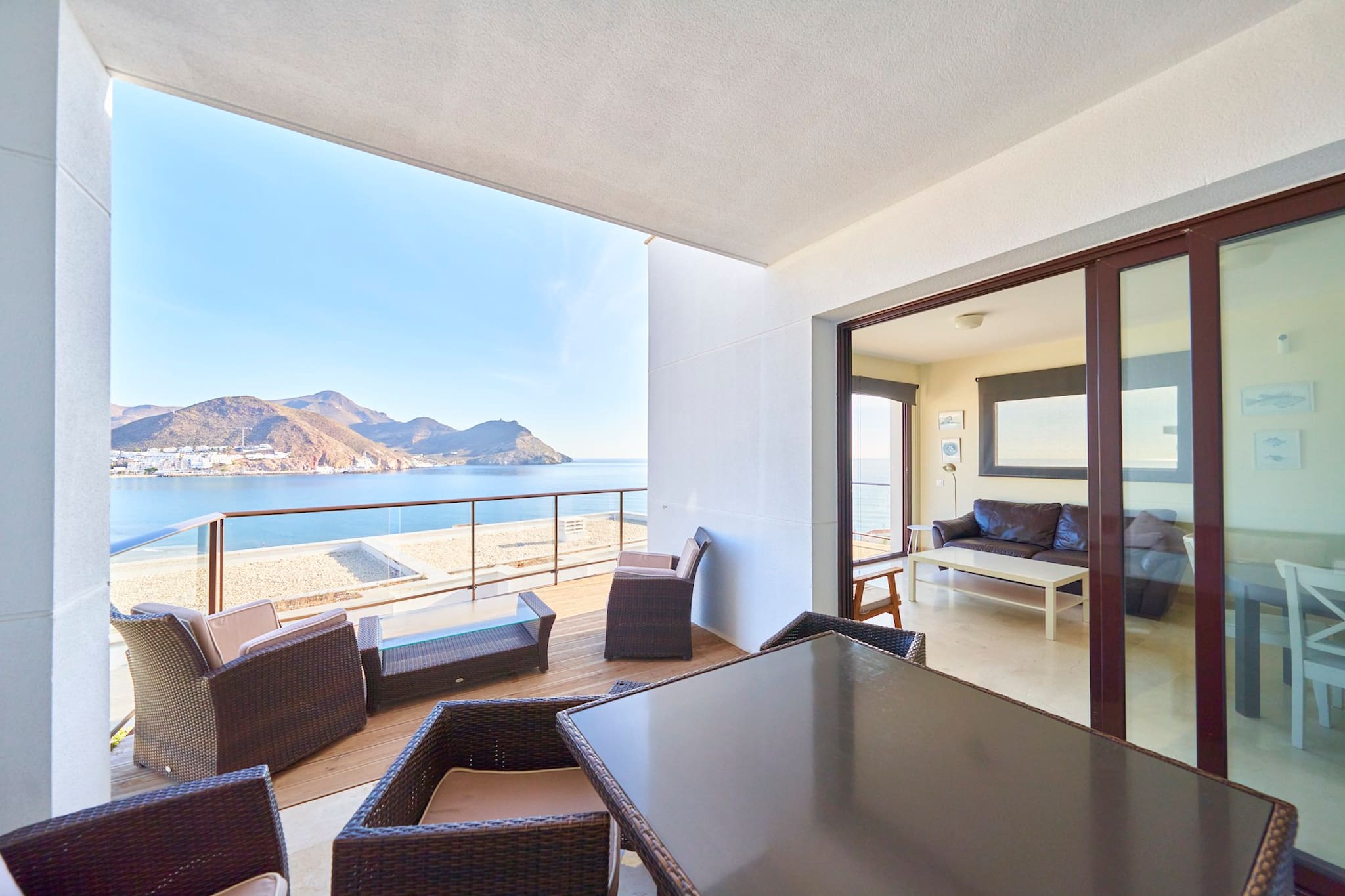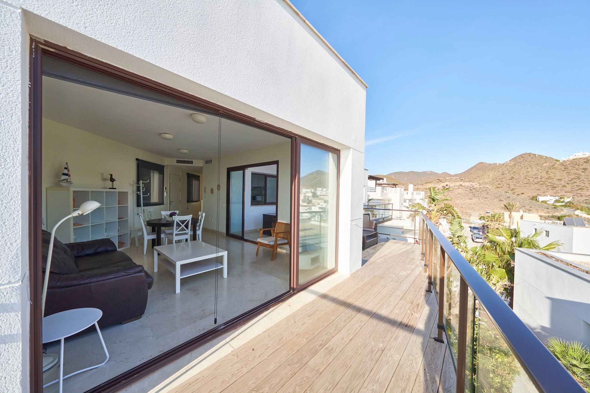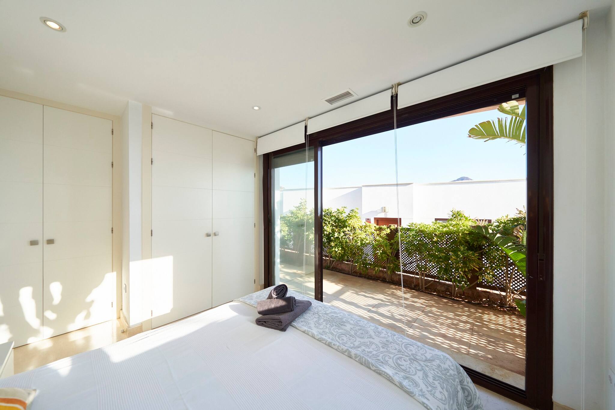 Appartement à San Jose qui possède 2 chambre(s) et Capacité pour 4 personnes. Logement de 120 m². Elle dispose de jardin, mobilier de jardin, clôture, 30 m² de terrasse, lave-linge, fer à repasser, accès internet (wifi), sèche-cheveux, climatisation dans tout le logement, piscine collective, parking extérieur même bâtiment, 1 Télévision.La cuisine indépendante, à vitrocéramique, est équipée avec réfrigérateur, micro-ondes, congélateur, lave-vaisselle, vaisselle/couverts, ustensiles/cuisine, cafetière, grille pain, bouilloire et presse-agrumes.